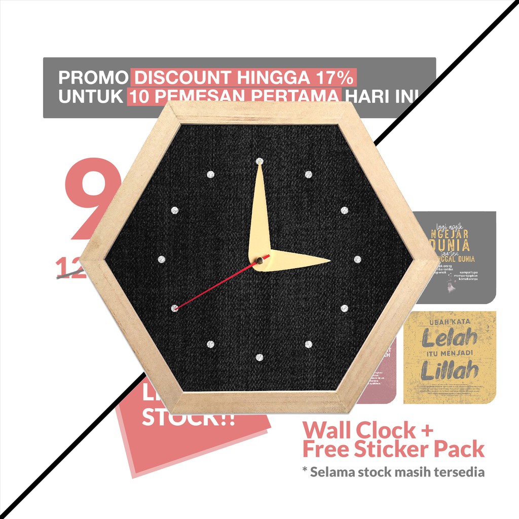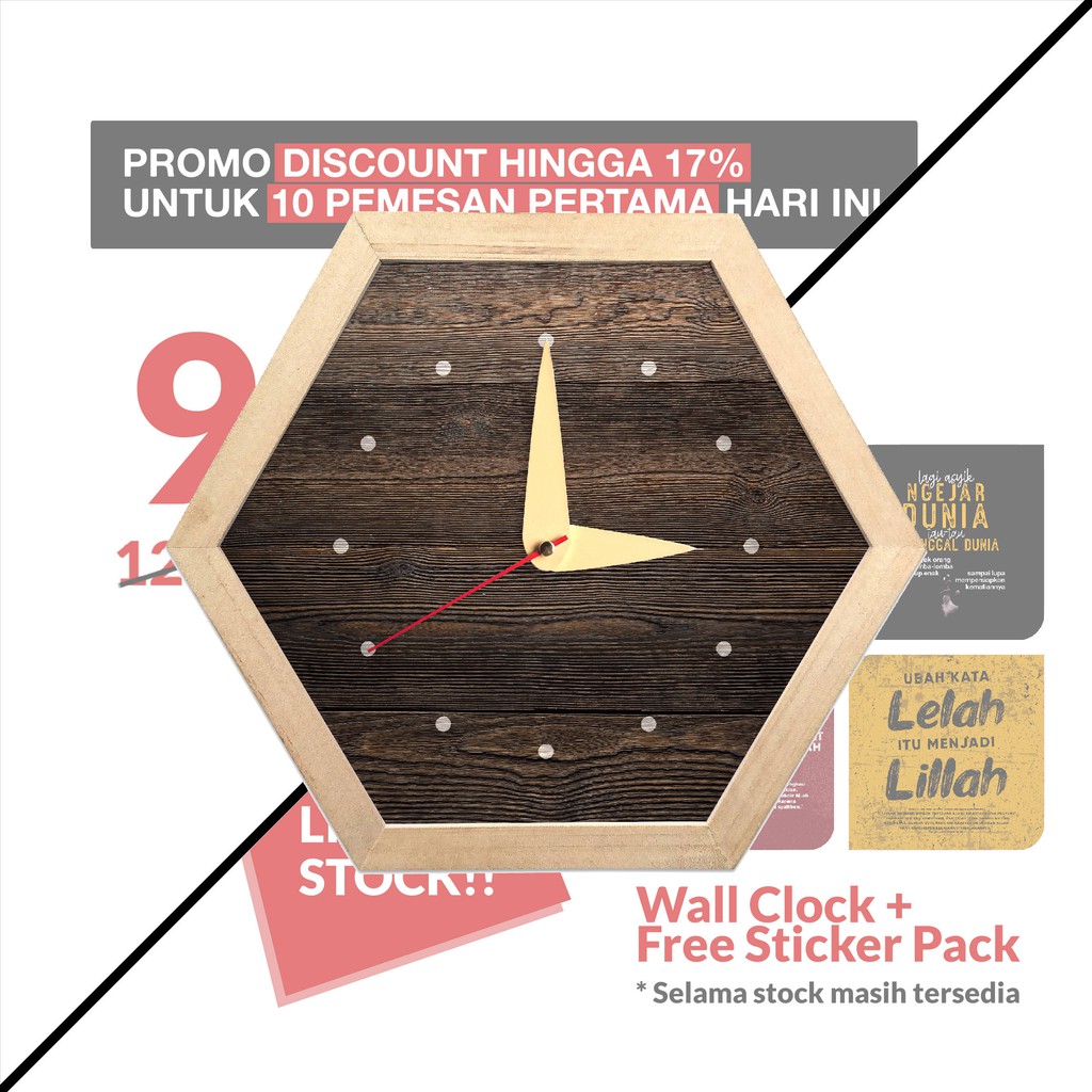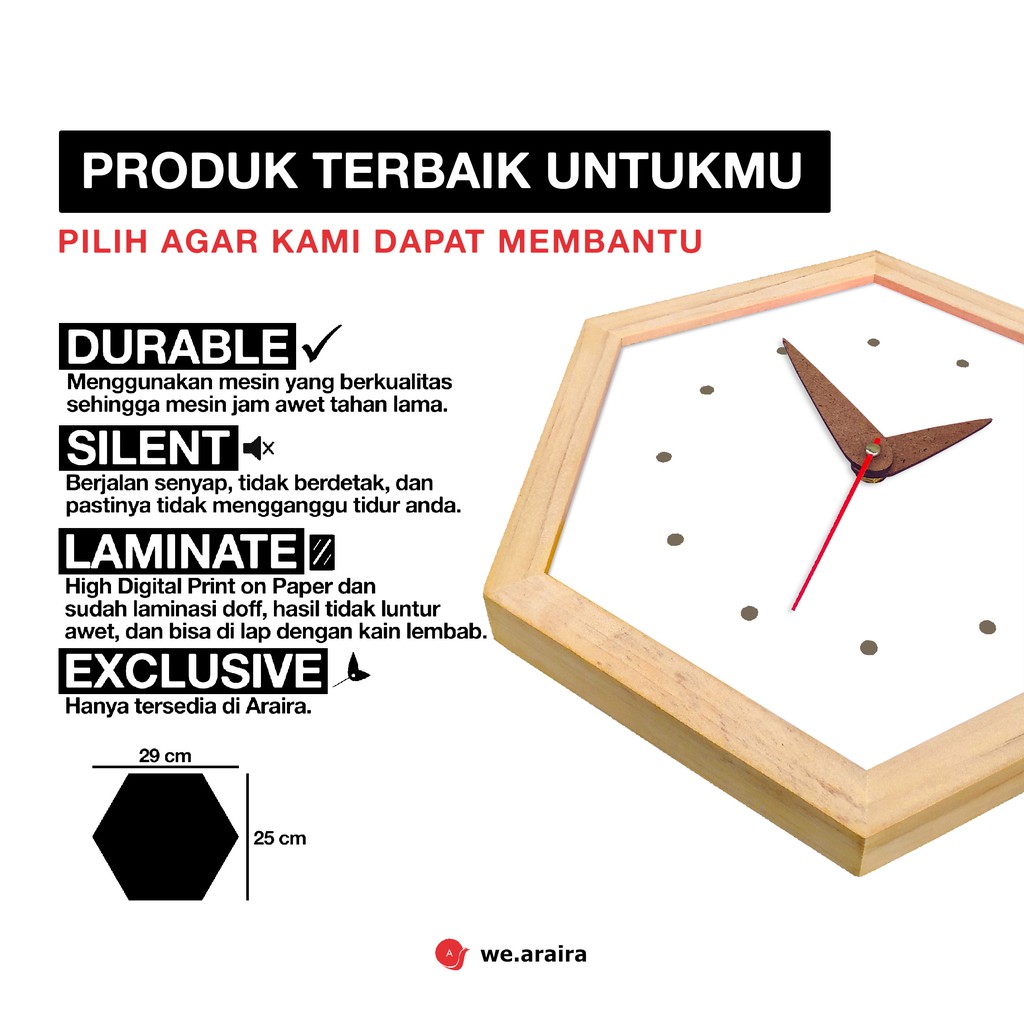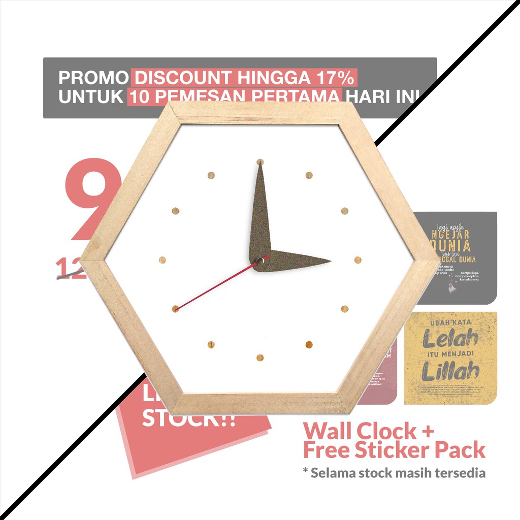 Jam Dinding Keren Detik Senyap Segi Enam - Hexa Pajangan Dekorasi Hiasan Dinding Rumah Vintage White