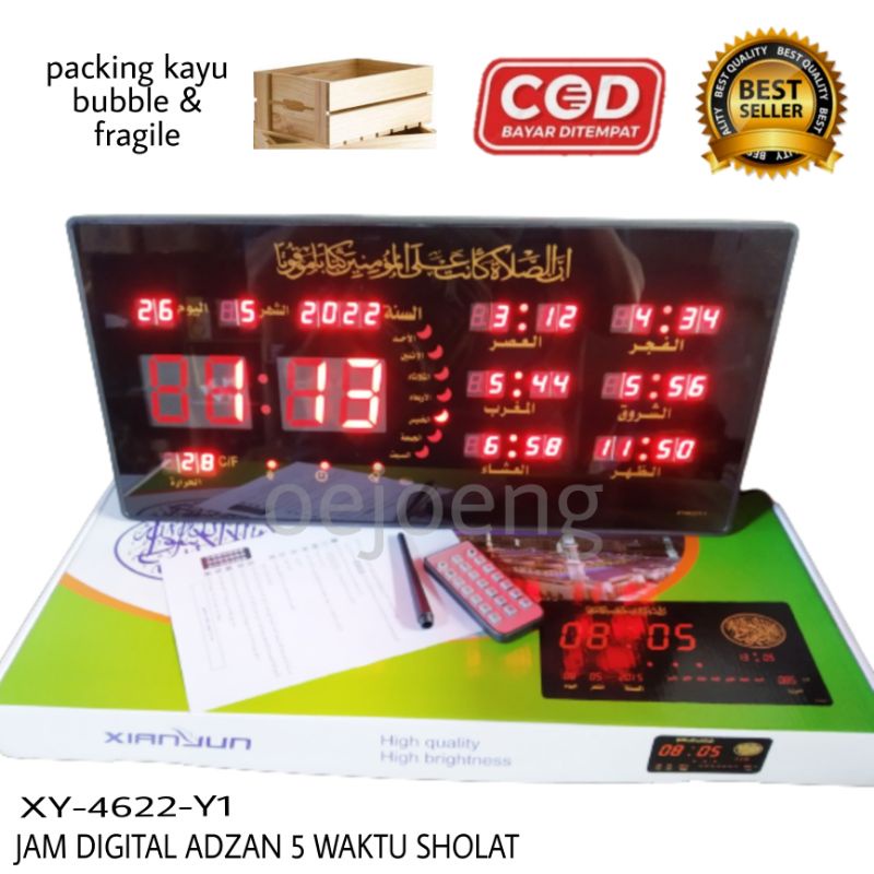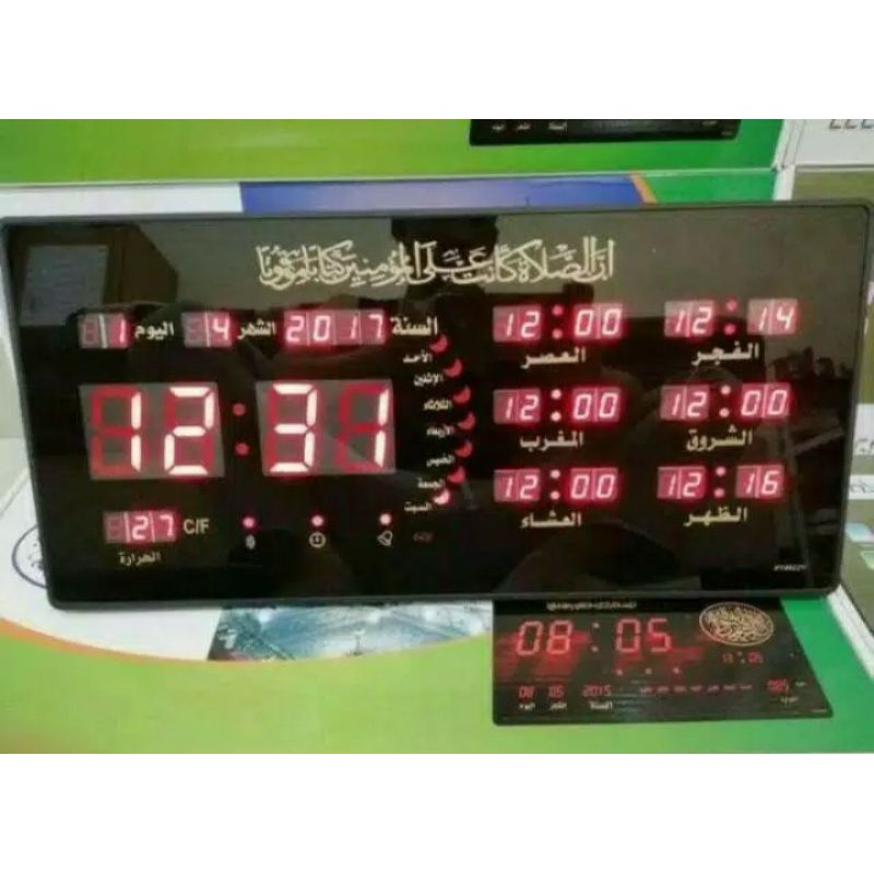 Jam Dinding Meja Digital LED Adzan Jadwal Waktu Sholat Mushola / Masjid Jam LED digital Otomatis Jam Adzan 5 Waktu Sholat FREE PACKING KAYU