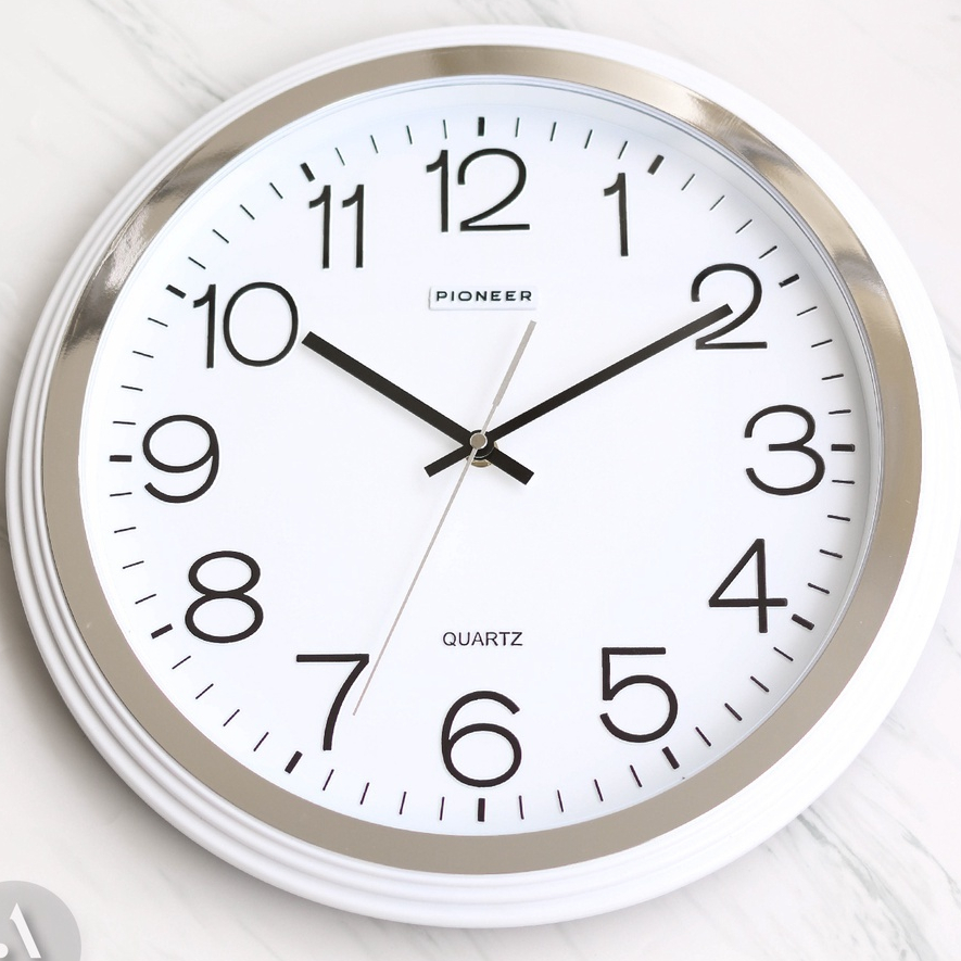 Jam Dinding Putih Ukuran Besar 39cm Angka Jelas Untuk Kantor PIONEER