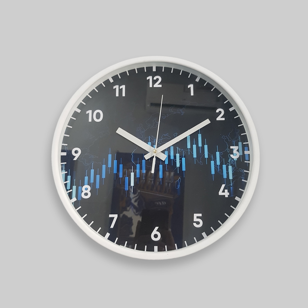 Jam Dinding Trader Candlestick Blue Kopi Trading Wall Clock