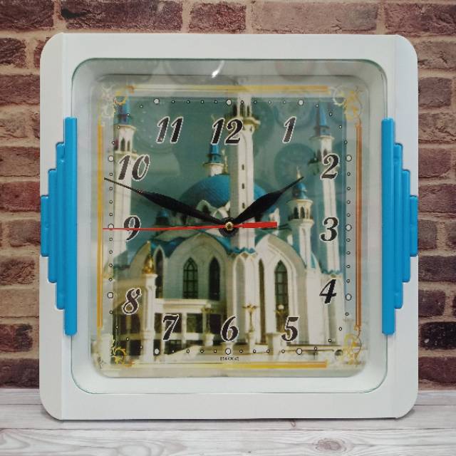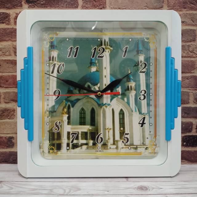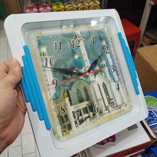 Jam Dinding kotak kaligrafi Arab Nuansa gambar masjid