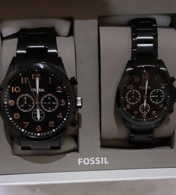 Jam Foss ssiiil Couple Watch BQ2278 Set Black Stainless Steel