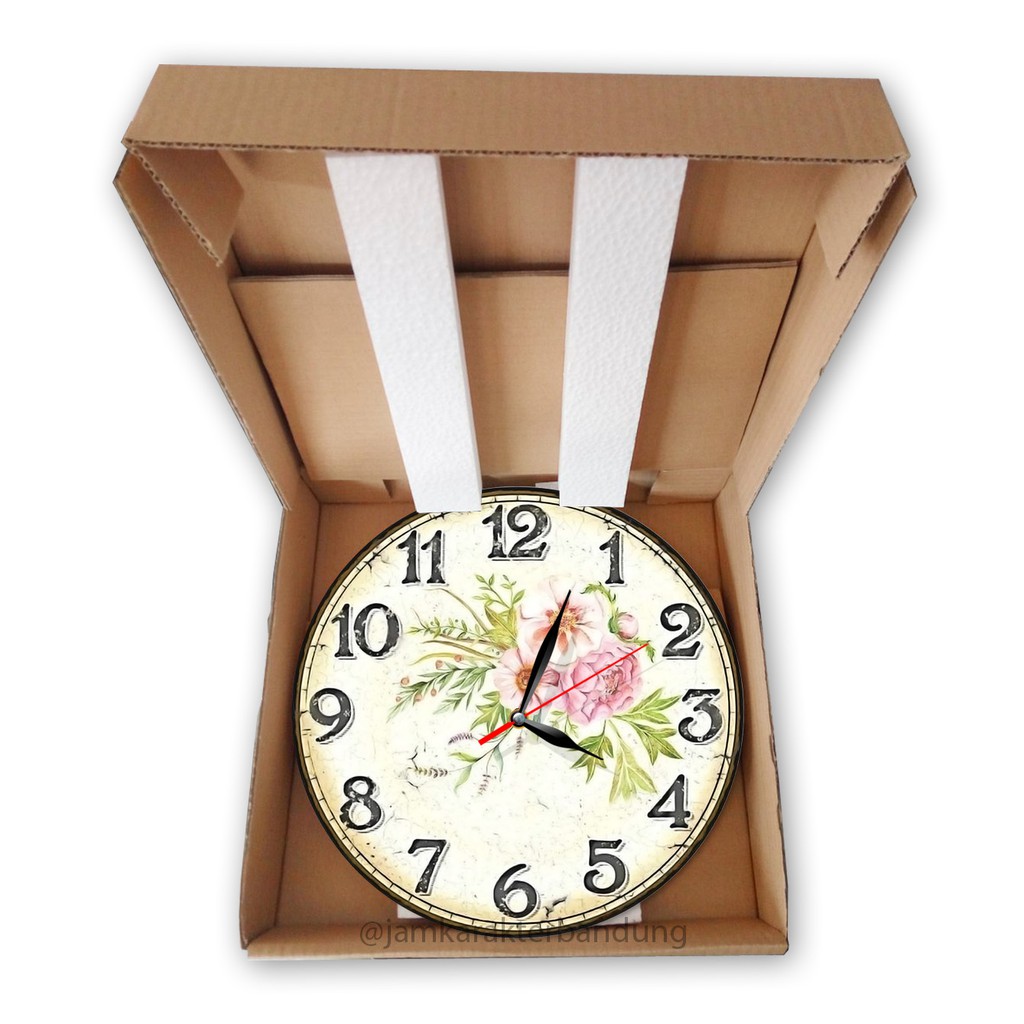 Jam Karakter Bandung - 042 Jam Dinding Cantik Shabby Chic Motif Bunga Hiasan Dinding