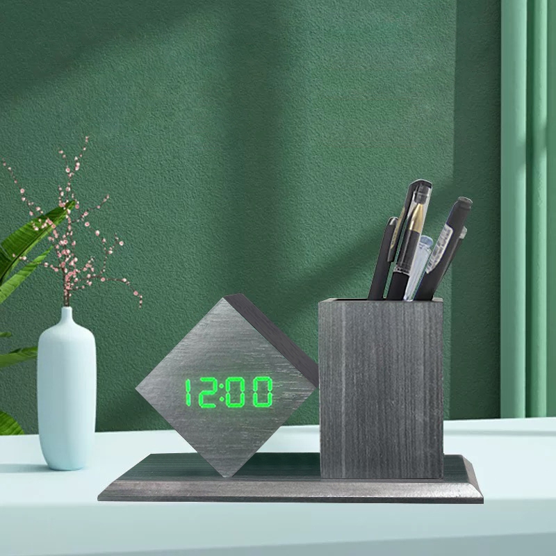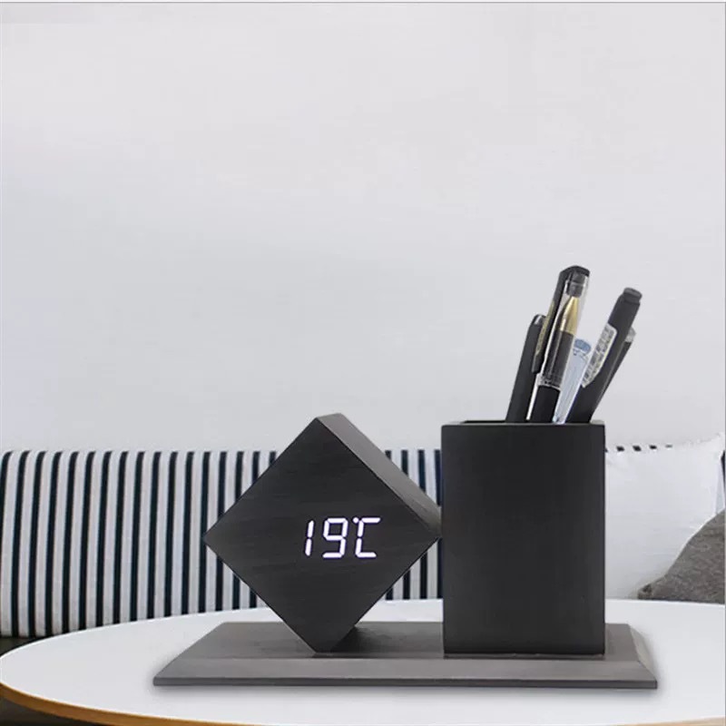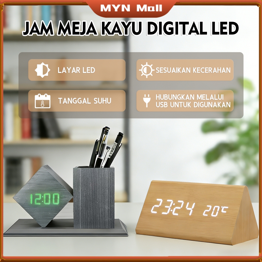 Jam Meja Kayu Digital Led /Jam Estetik + SUHU /Digital Wood Smart Alarm Clock/ ESTETIK JAM WEKER