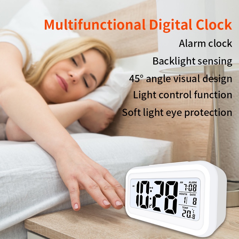 Jam Meja Digital / Jam Weker Pintar / Jam Meja Penginderaan Cahaya Cerdas Digital
