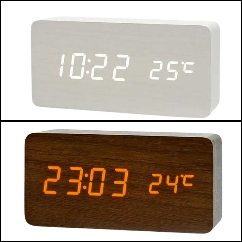 Jam Meja Kayu Digital LED Jam Meja Kayu Digitla Alarm Tempreratur Digital Wood Smart Alarm Clock