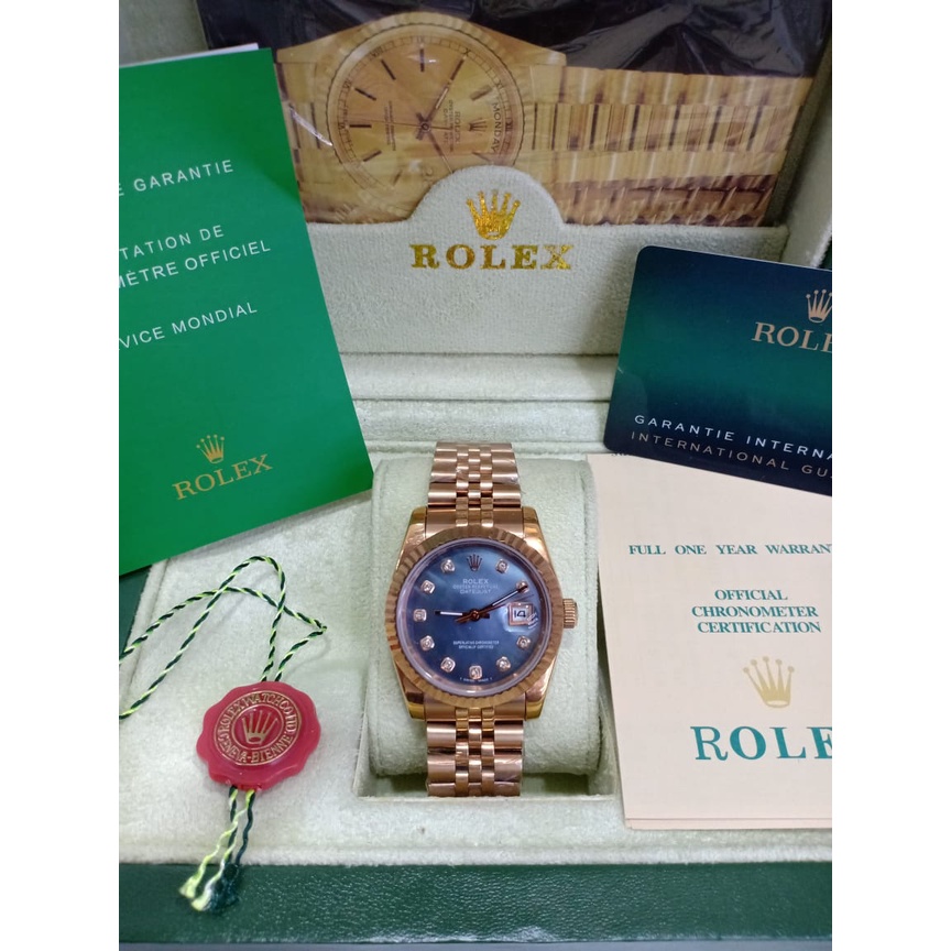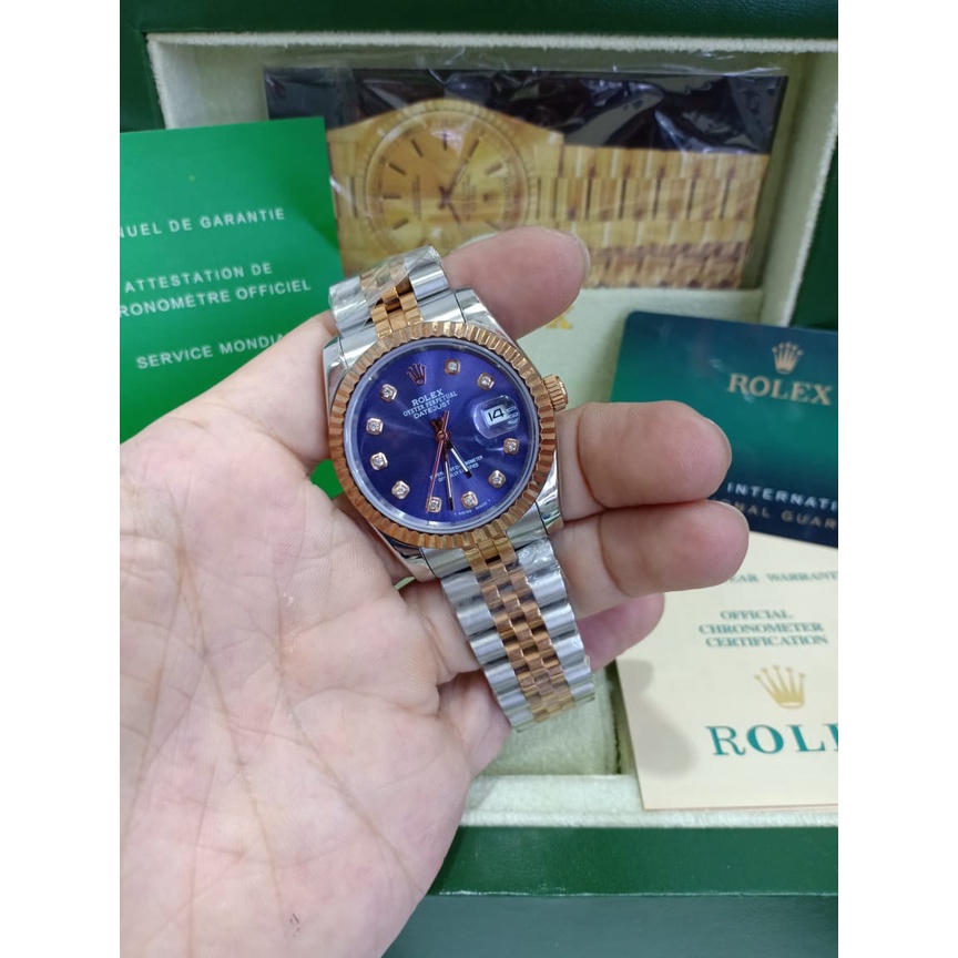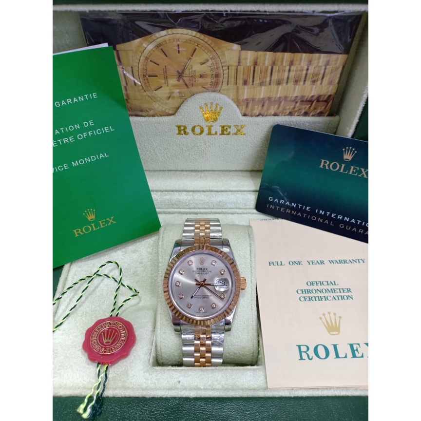 Jam Rolex Wanita Automatic Grand AAA Stainless Model Analog Tanggal Aktif / Jam Rolex Otomatis Tanpa Baterai Free Box Rolex Original Komplit (Buku, Id Card, Paper Bag)