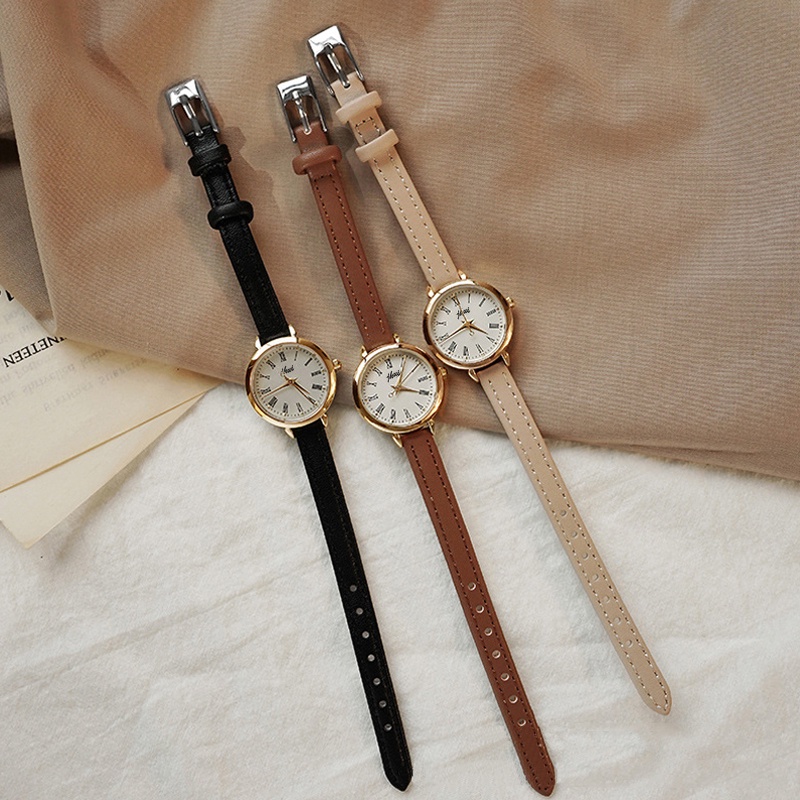 Jam Tangan Jhui Kecil Wanita Analog Dial Bulat Dengan Strap Pu Leather