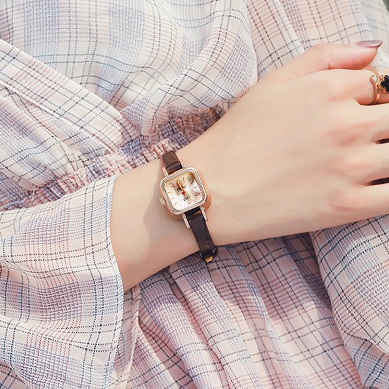 Jam Tangan Kecil Wanita Strap Pu Analog Fashion Quartz Dial Kotak / Jam Tangan Casual Wanita