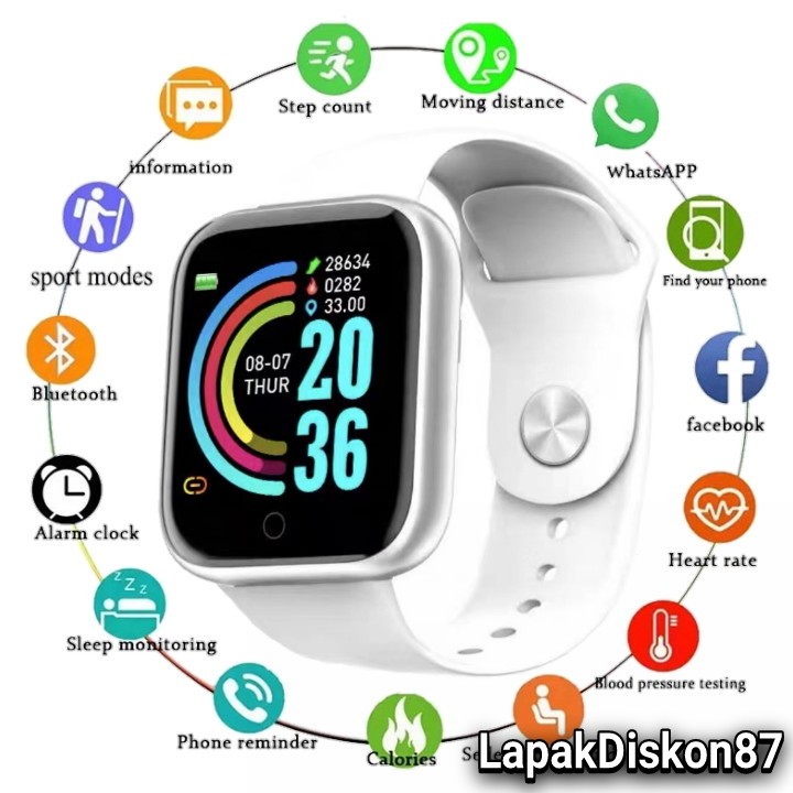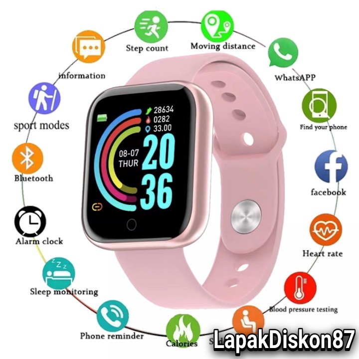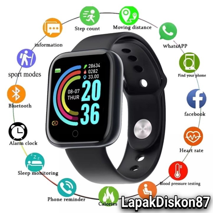 Jam Tangan Pintar SmartWatch Y68 D20 Sport Bluetooth Smart Watch bisa ubah walpeper dan Terima Notif Pesan Monitoring Whatsapp Wa Olahraga Pelacak Kebugaran Kalori Langkah Kaki Sensor Detak Jantung Anti Air