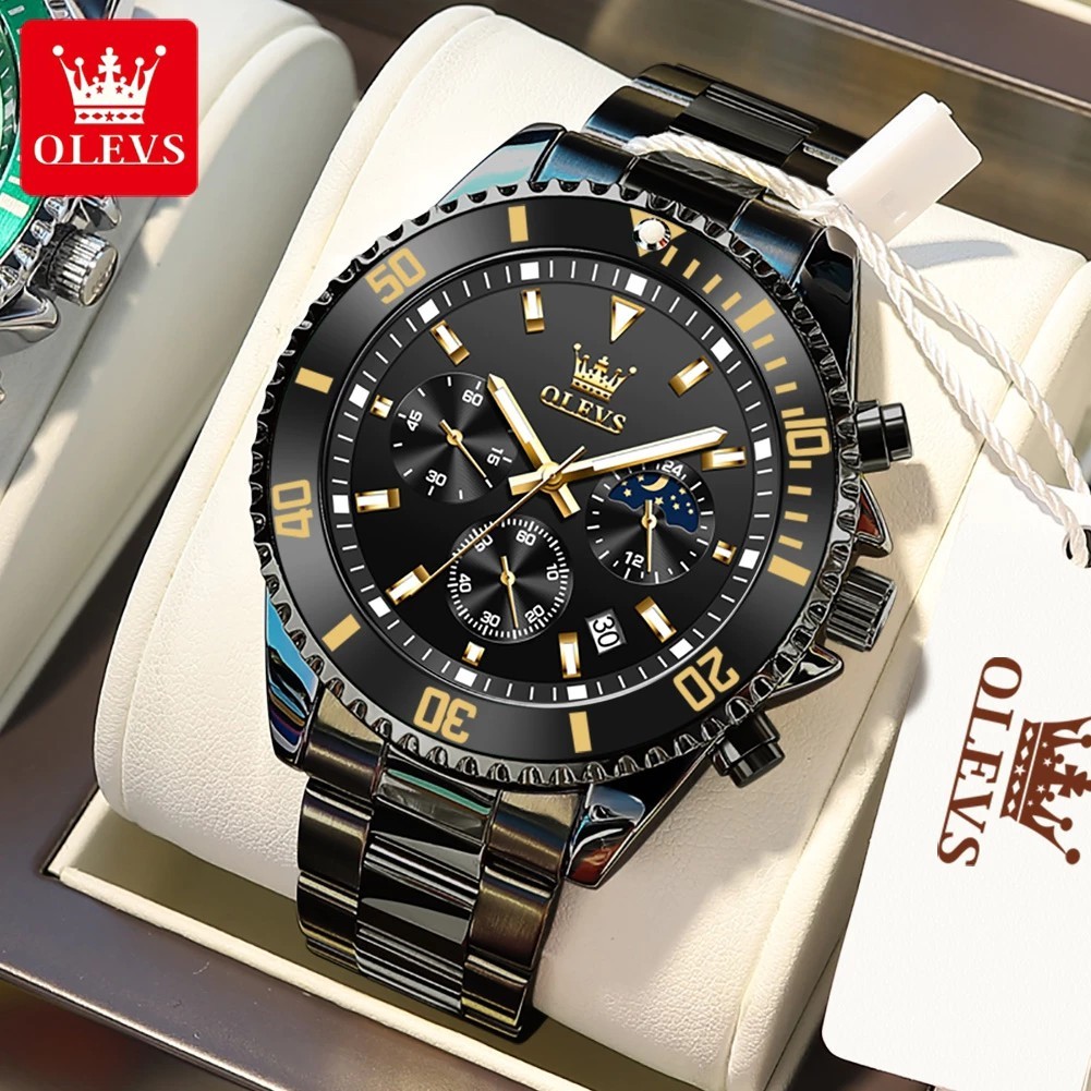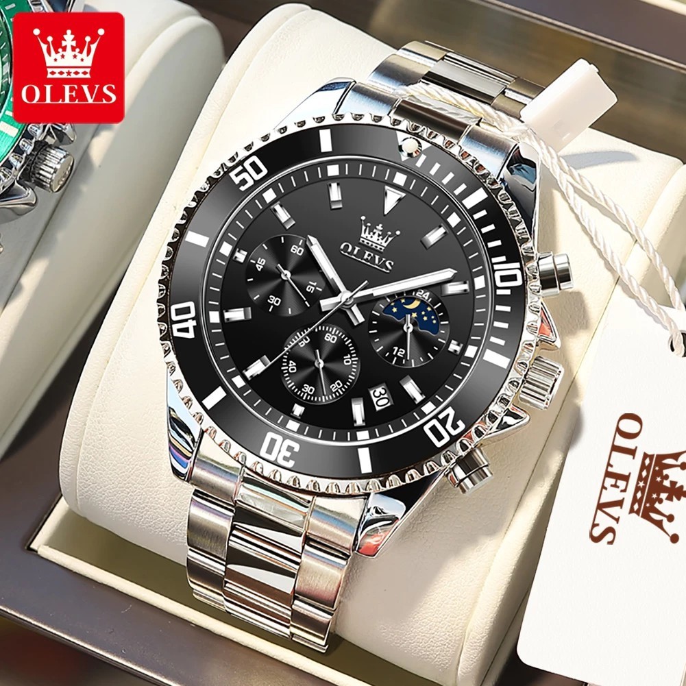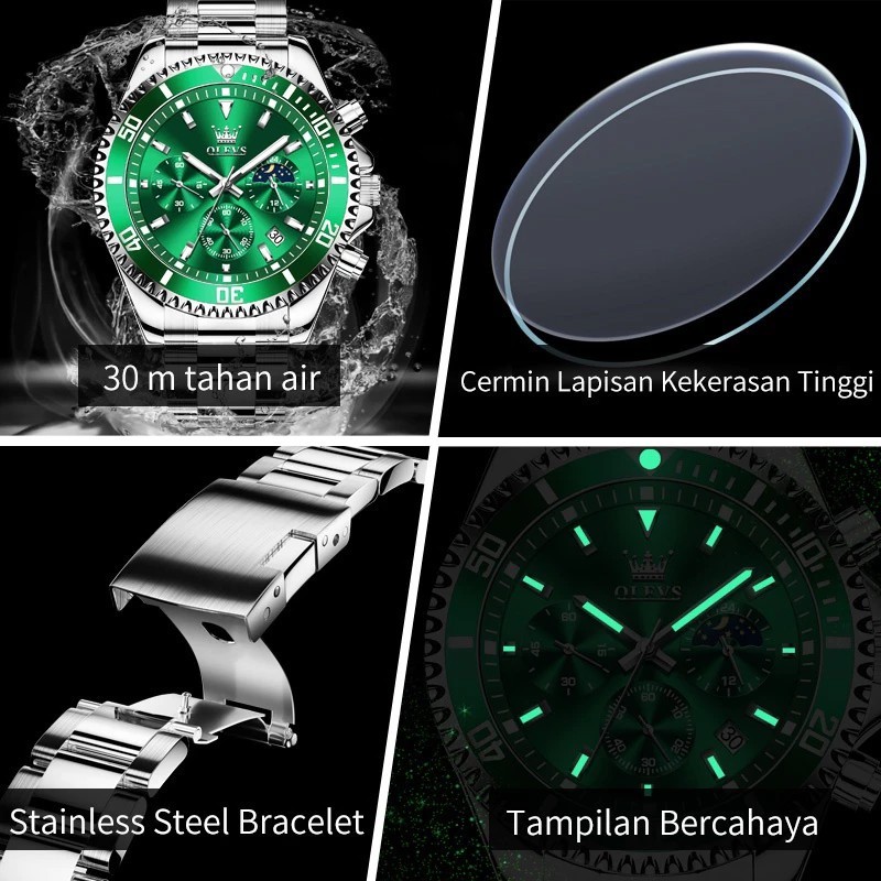 Jam Tangan Pria Anti Air Original OLEVS 2870 Luxury Analog Stainless Steel Chronograph Watch Men