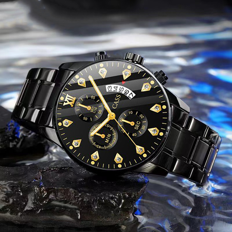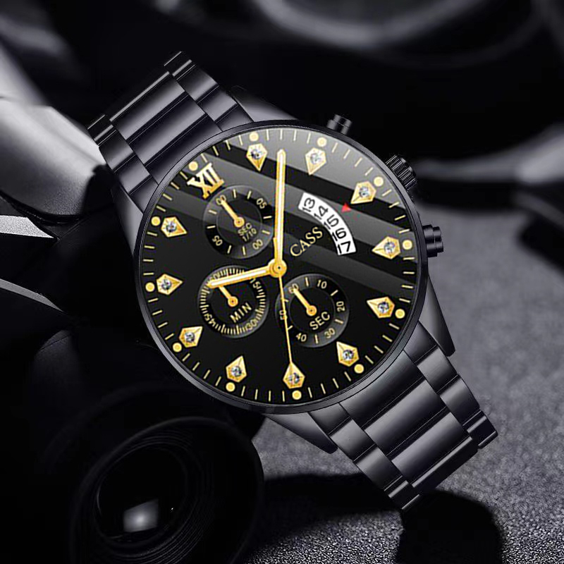 Jam Tangan Pria Tahan Air Jam Tangan Teknologi Hitam Multifungsi Jam Tangan Pria Tiga Mata 6 Tangan Stopwatch Kalender Kronograf Bercahaya