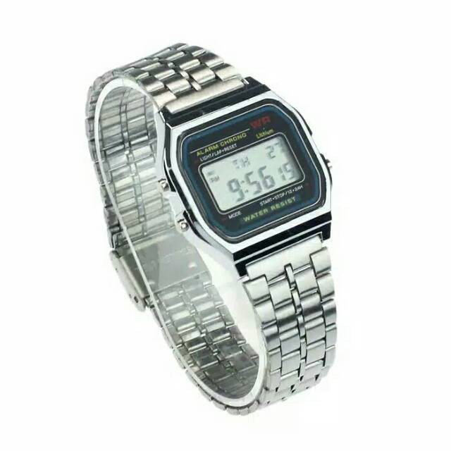 Jam Tangan Wanita Digital Kotak Rantai Model Casio