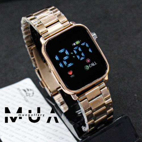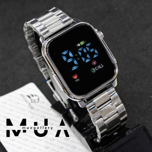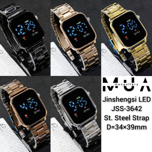 Jam Tangan Wanita Led Watch Digital Layar Kaca JSS Tali Rantai Stainless LED Digital Model Kekinian Digital