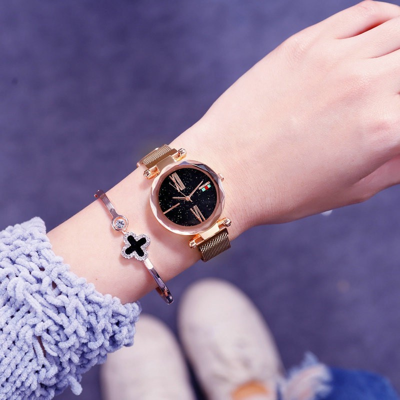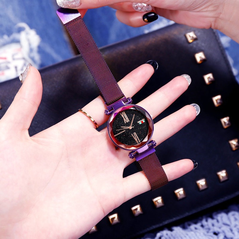 Jam Tangan Wanita Murah Premium Rantai Magnet Plat Glitter
