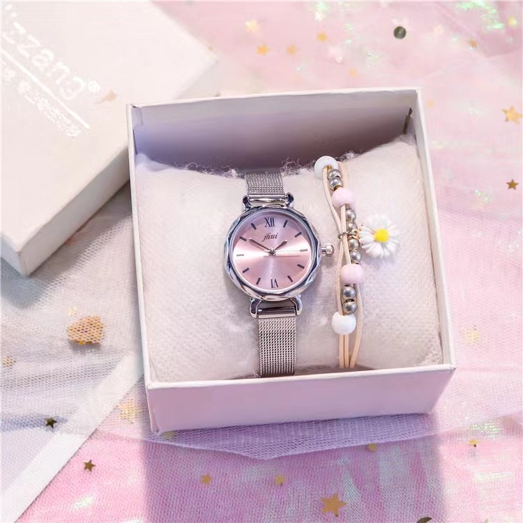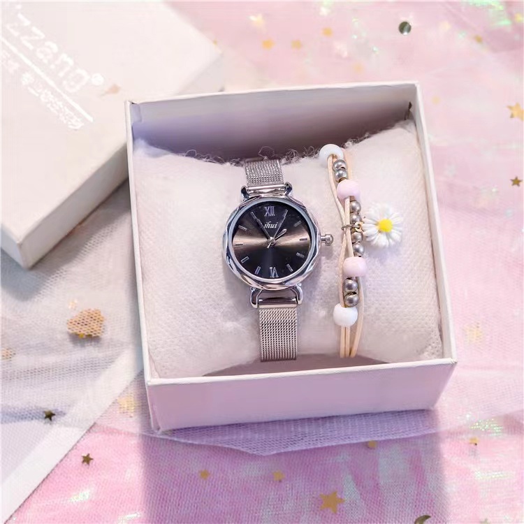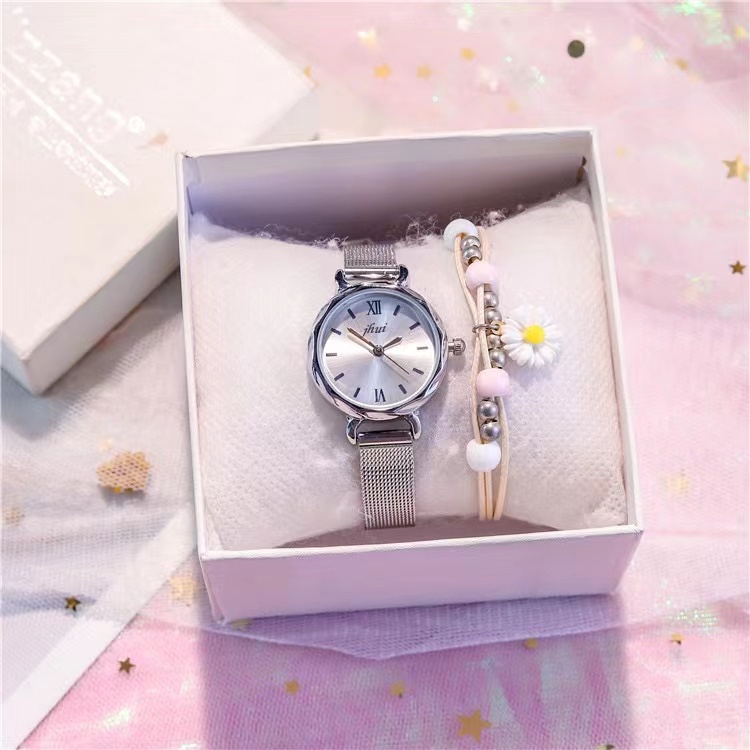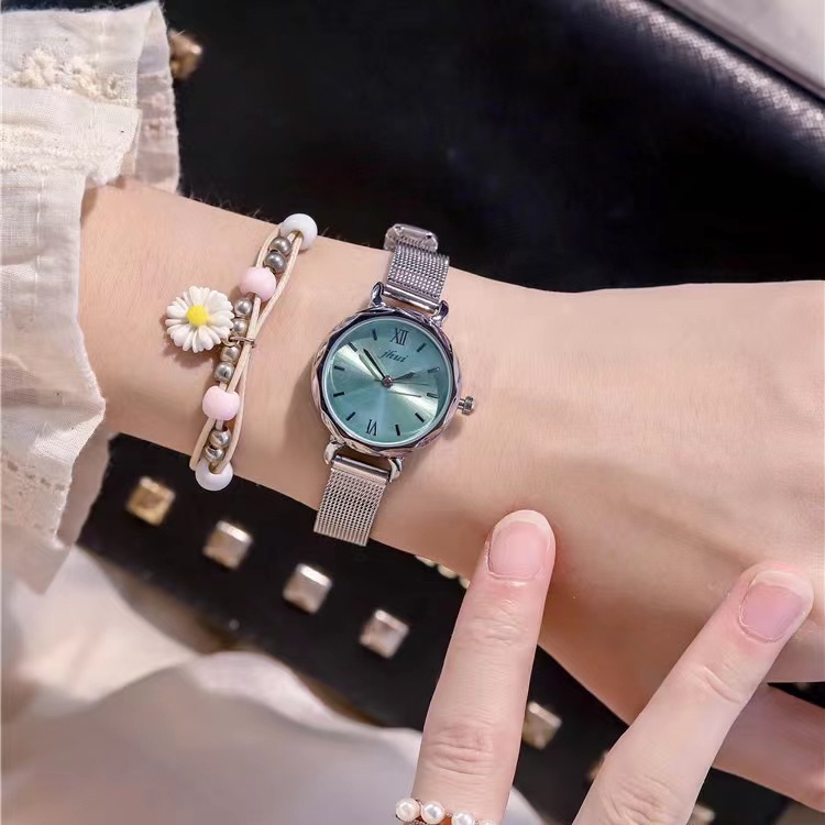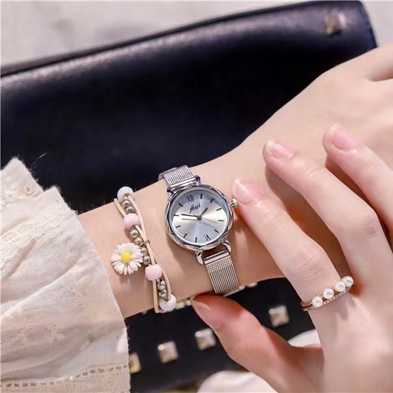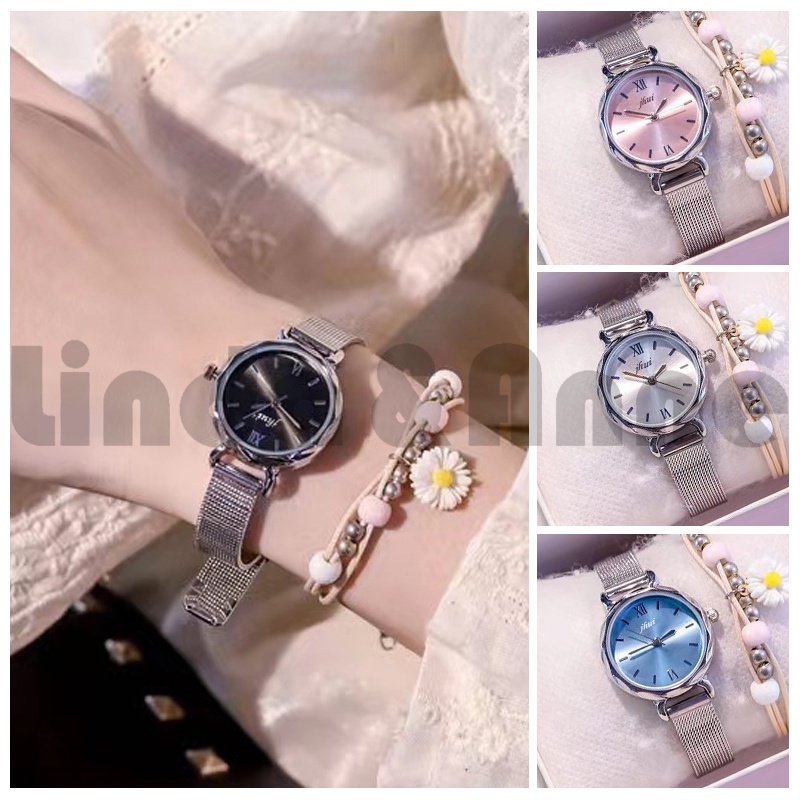 Jam Tangan Wanita Stainless Steel Analog Dial Bulat Romawi