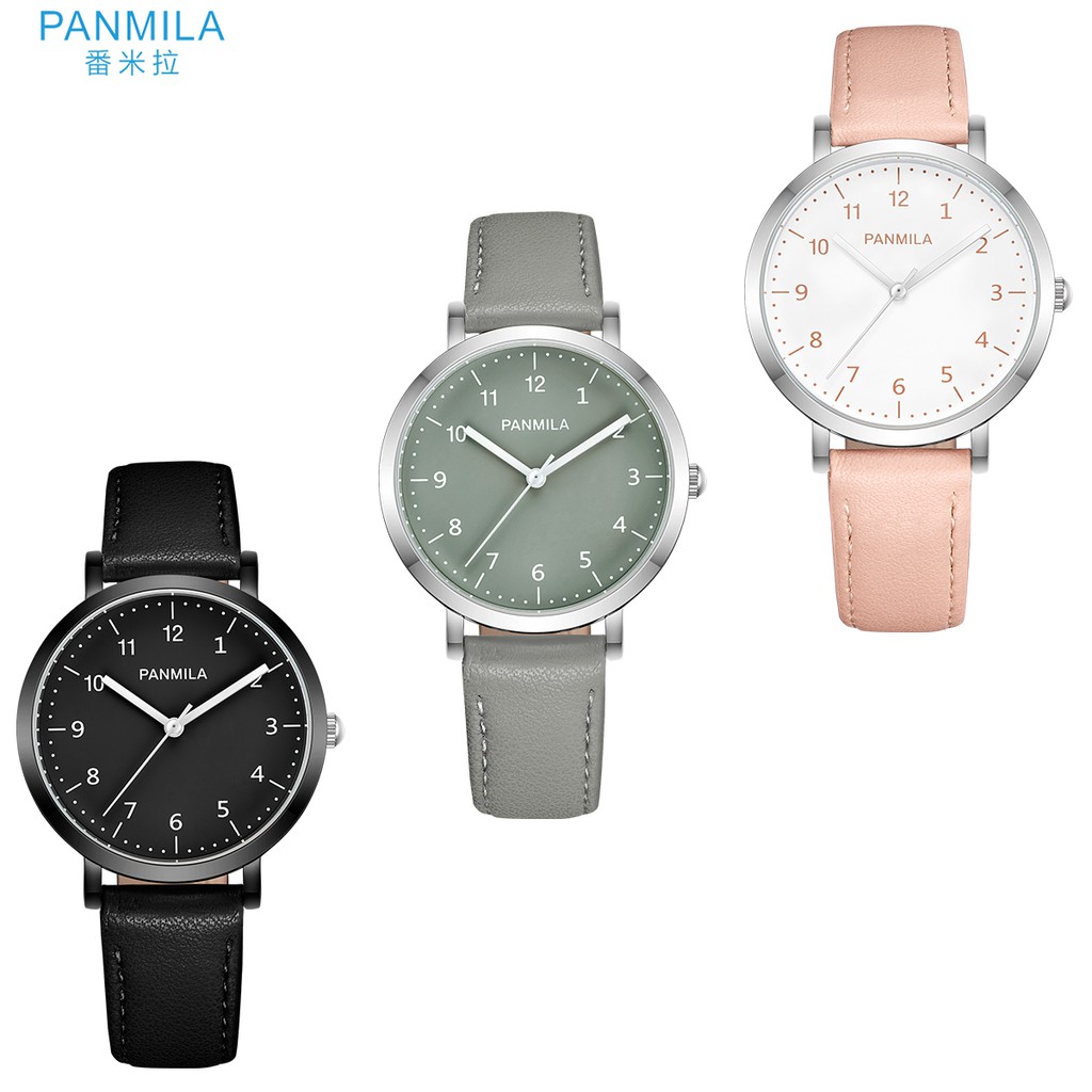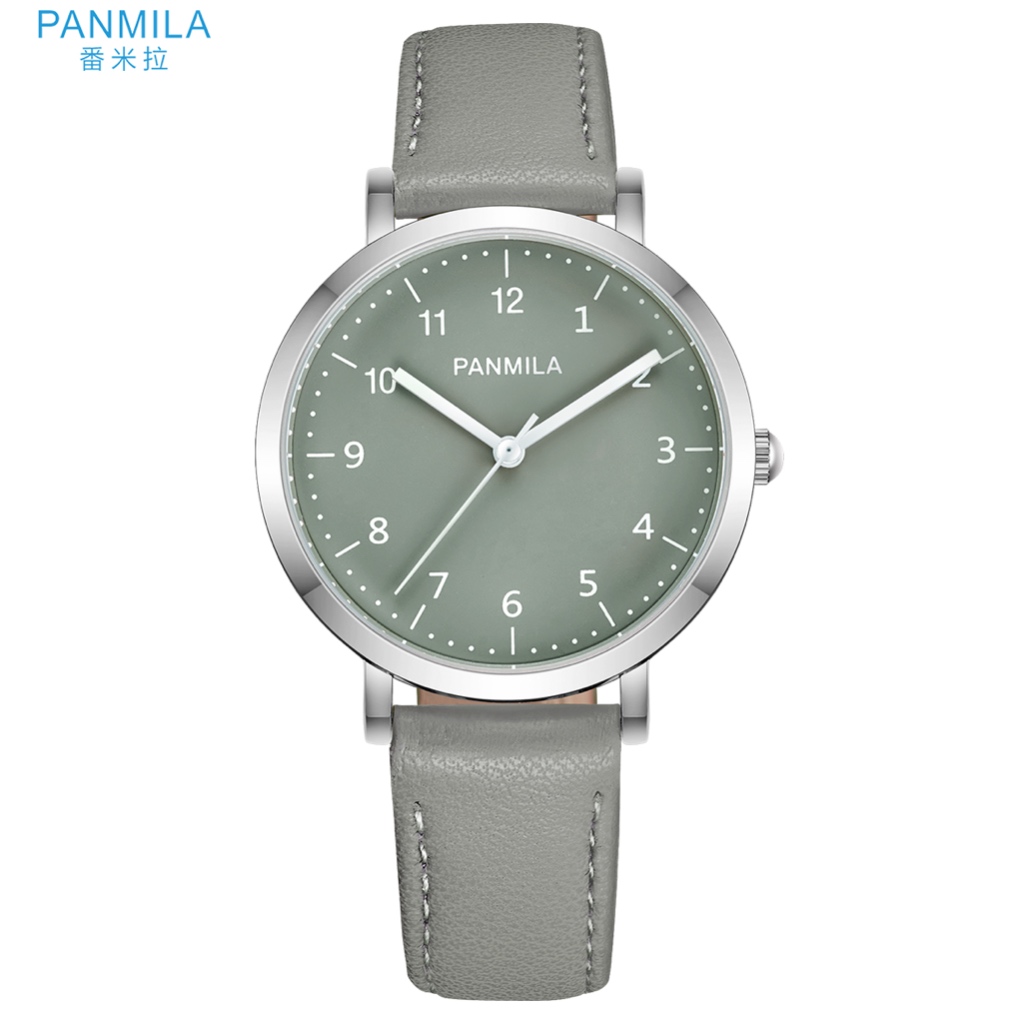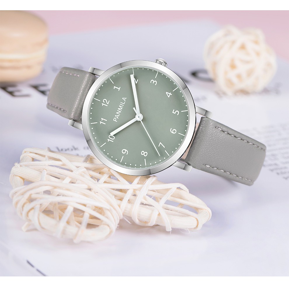 Jam Tangan Wanita keren analog terbaru Kasual Panmila P0569M-DZ1WZQ Tali Kulit Hijau Abu
