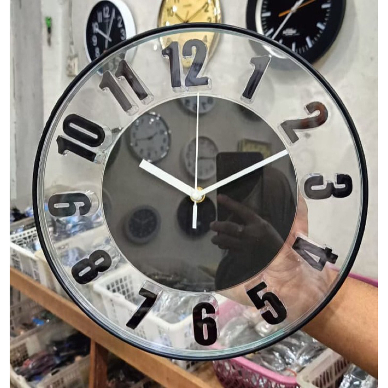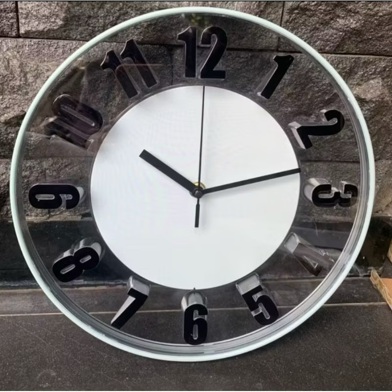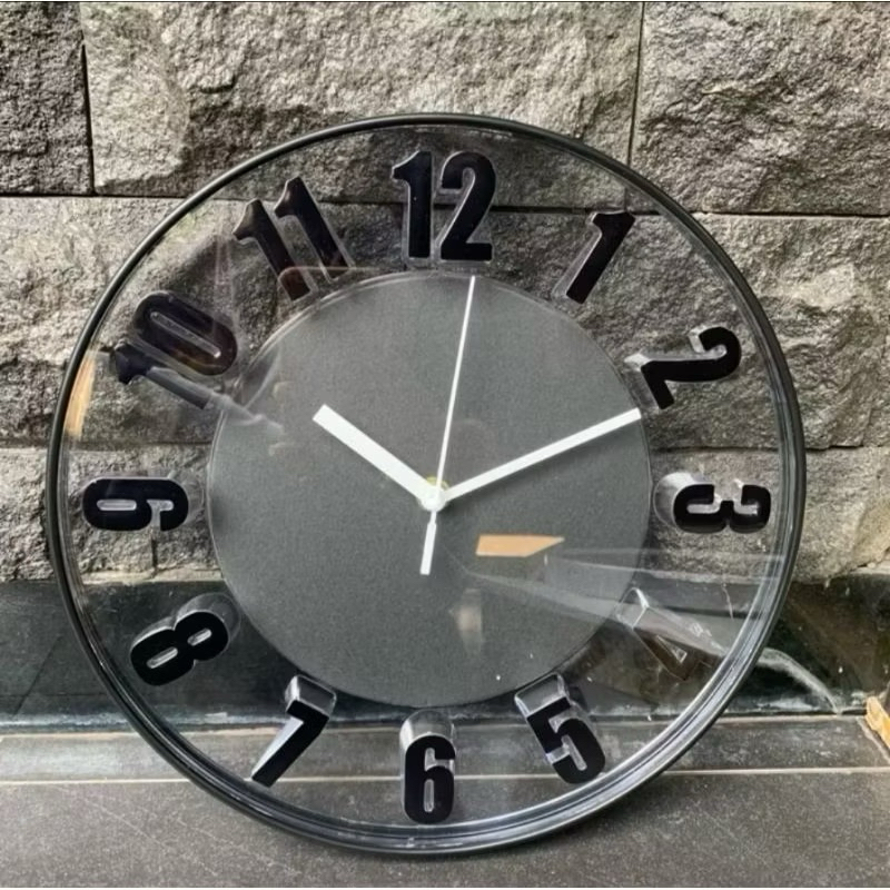Jam dinding Kaca Transparan Angka Timbul Murah -full transparan tipe 9028