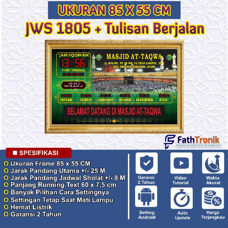 JAM MASJID DIGITAL JADWAL SHOLAT DIGITAL TIMER IQOMAH RUNNING TEXT JAM WAKTU SHOLAT DIGITAL TULISAN BERJALAN