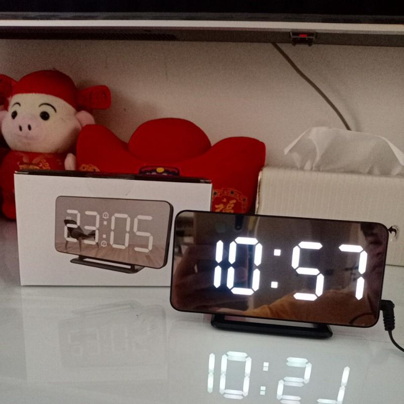 Jam meja kayu Digital LED / jam estetik + suhu / Digital wooD smart alarm / estetik jam weker bunyi alarm di tepuk tangan langsung Diam