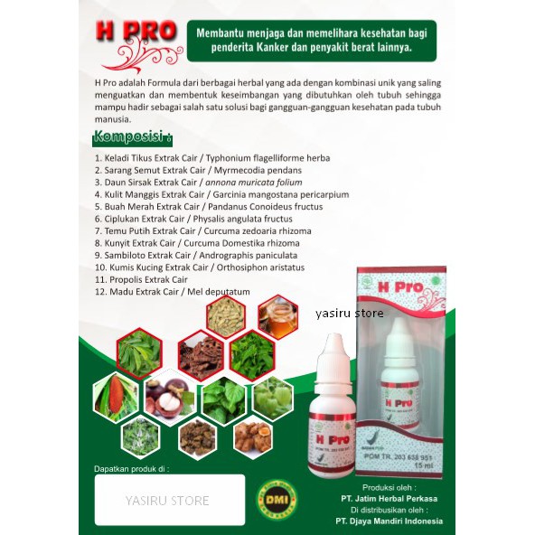 Jamu Tetes HPRO H PRO Herbal Obat Kanker Tumor Diabetes Syaraf dan Penyakit Berat Menahun Lainnya