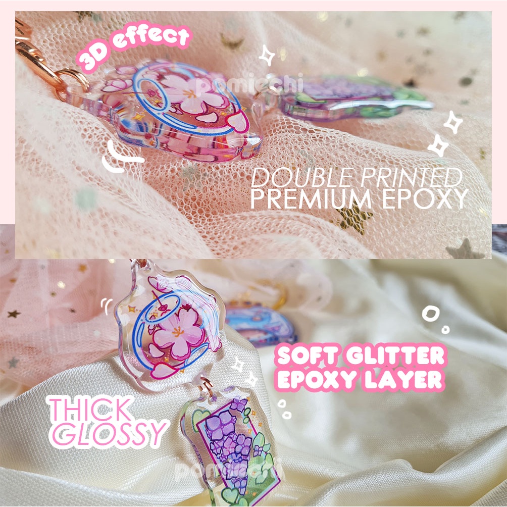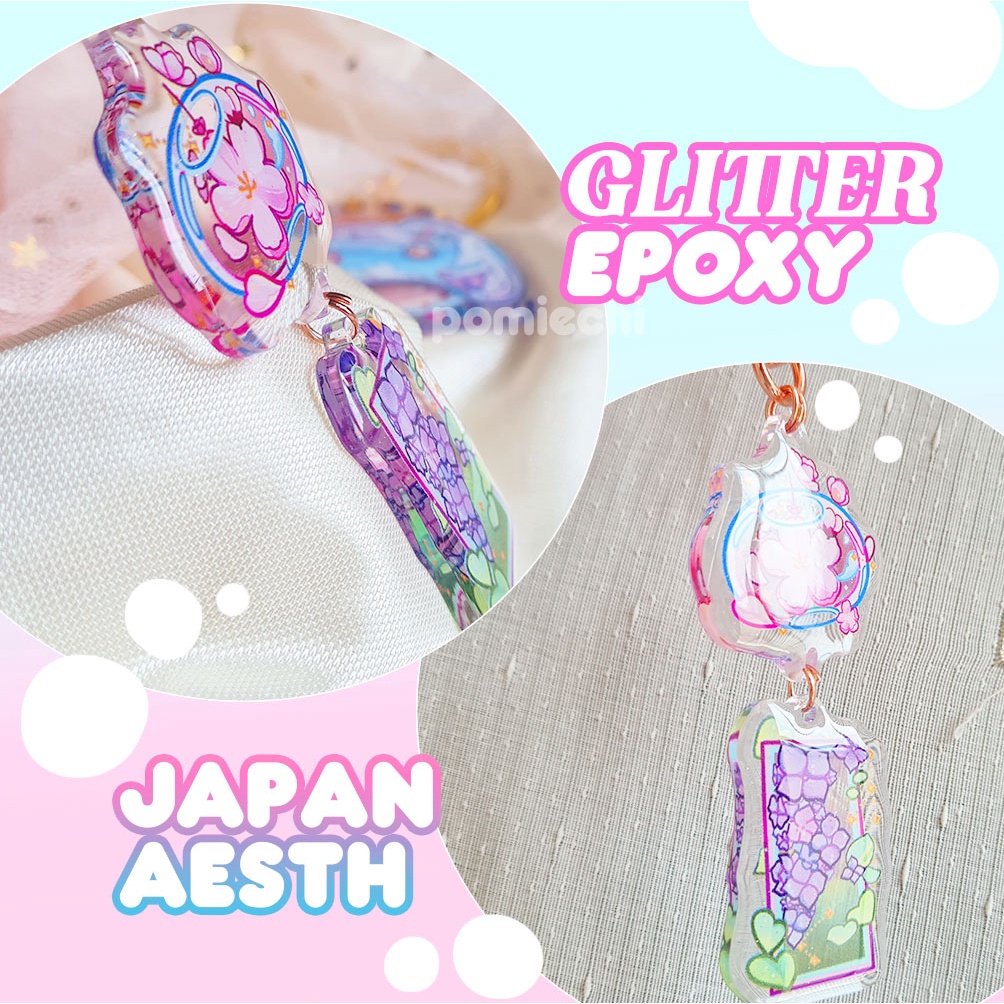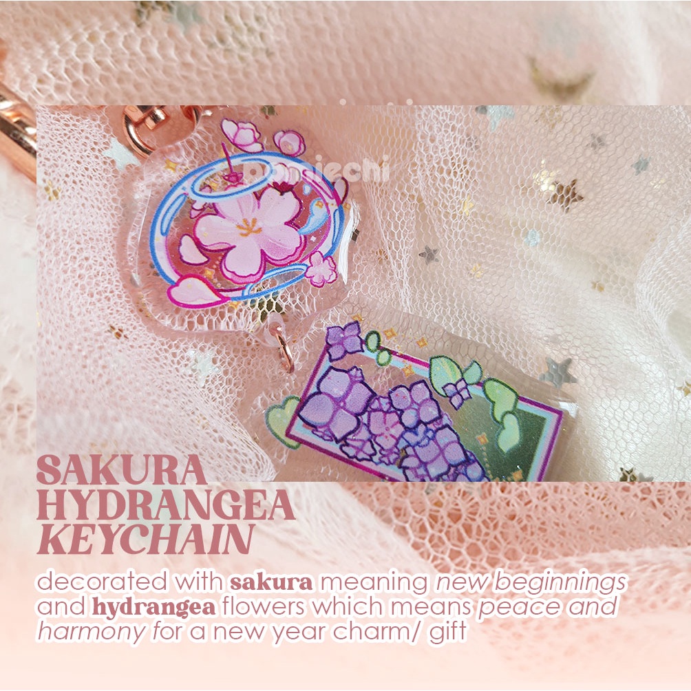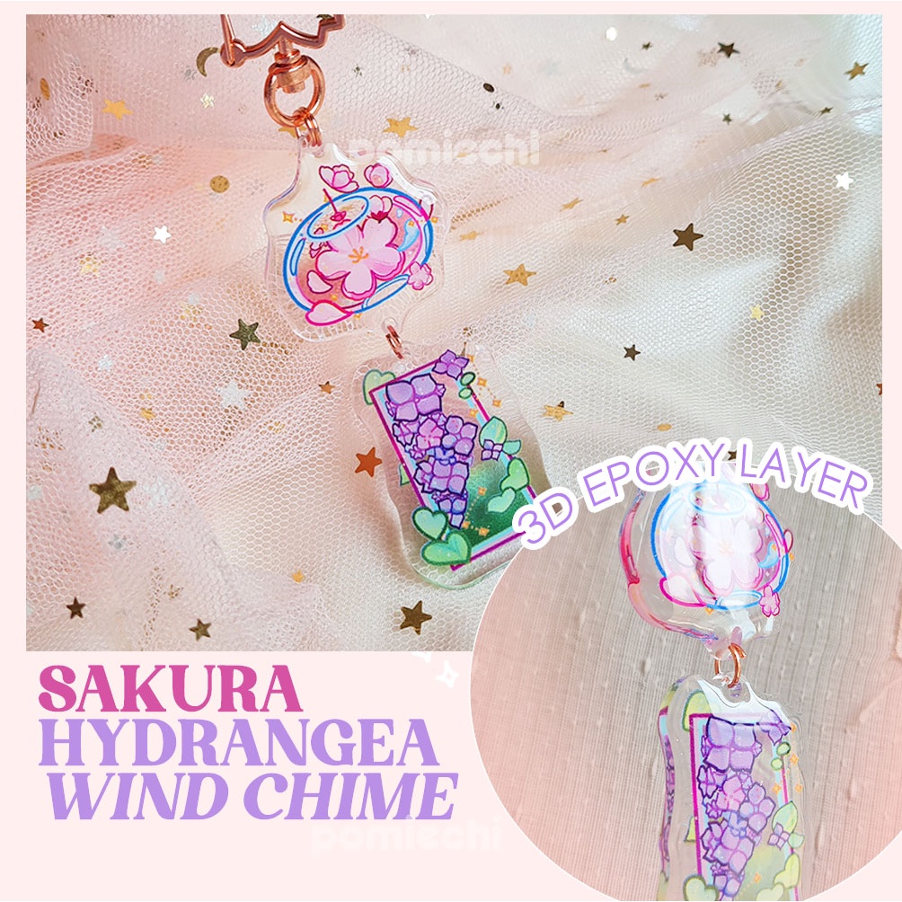 Japanese Sakura Hydrangea Wind Chime Keychain Epoxy Acrylic, Keychain Aesthetic, Keychain Anime Jepang, Keychain Kawaii Fuurin Wind Chime Aesthetic Cute Keychain for Unique Gift