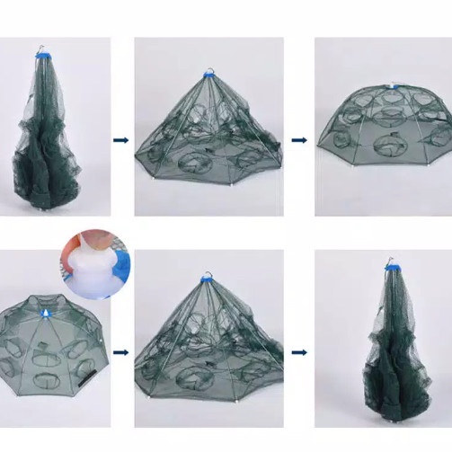 Jaring ikan Perangkap Bubu Payung Alat Jaring Pancing Jala Ikan Udang Kepiting Fish Trap Net Multifungsi 4 , 6 , 8 , 10 , 12 , 16 , 20 lubang