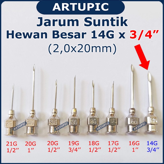 Jarum Suntik Hewan Besar 14G x 3/4 inch Vaksin Ternak Sapi Babi Kuda Vet Needle Stainless Steel