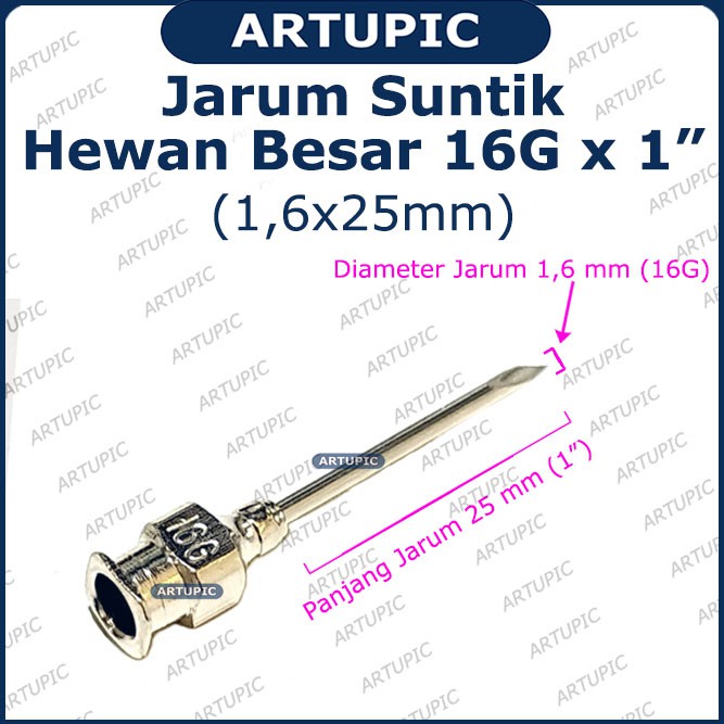 Jarum Suntik Hewan Besar 16G x 1 inch tipe POLOS Vaksin Ternak Sapi Babi Vet Needle Stainless Steel