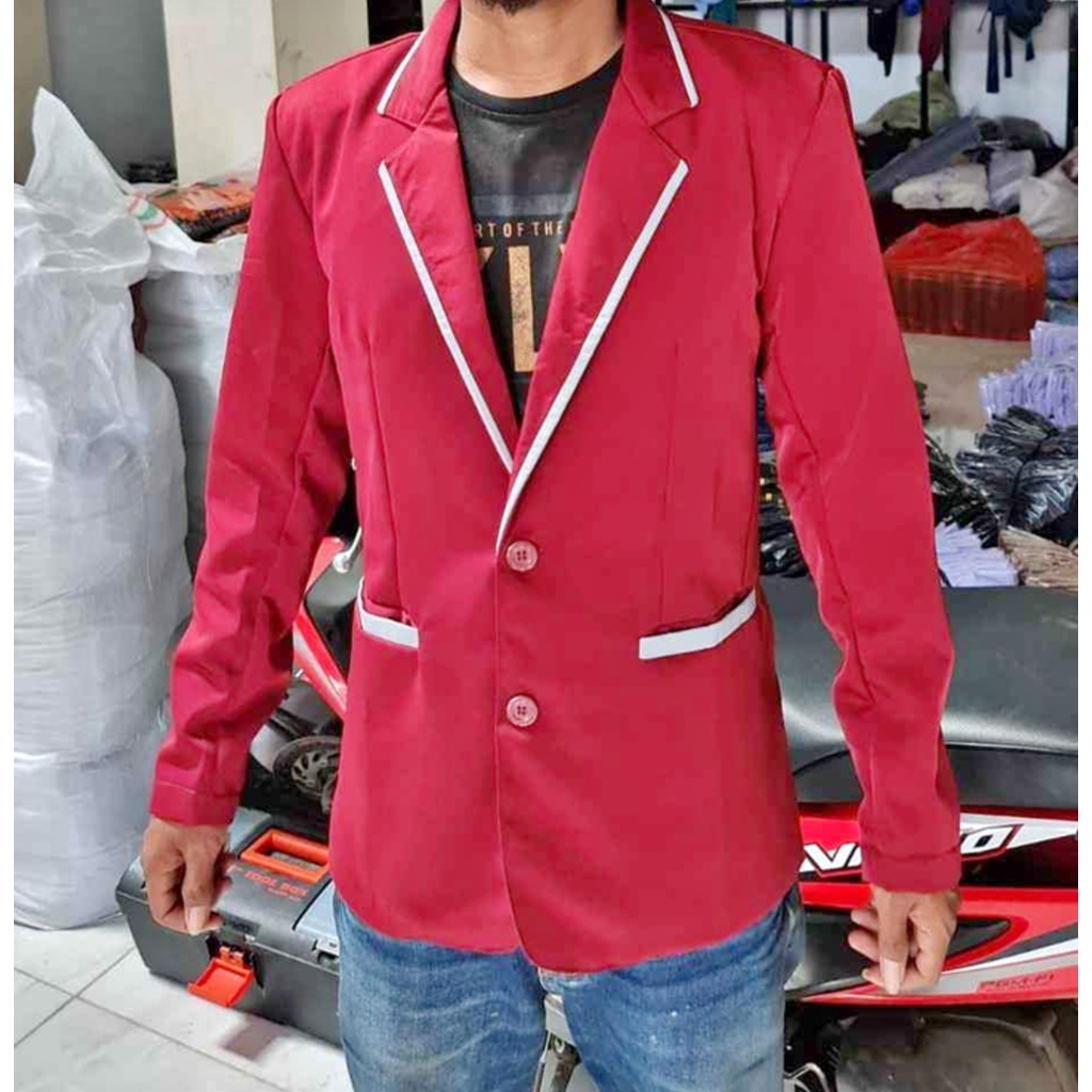 Jas Almamater merah maroon lis putih bisa tambah bordir, Jas Sekolah Merah Maroon/ blazer maroon