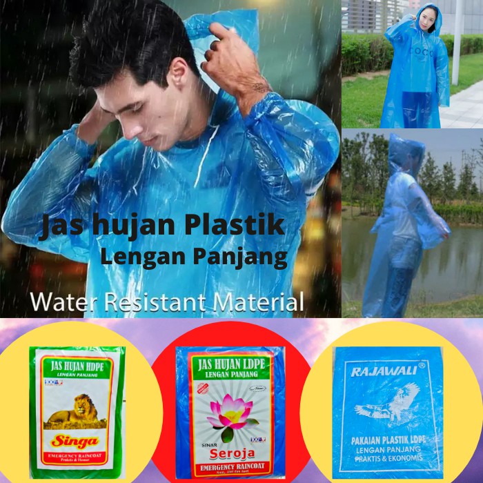 Jas Hujan Poncho Plastik LDPE HDPE Raincoat Mantel Hujan Plastik Ponco Lengan Panjang Emergency Darurat Tebal Bisa Dipakai Berulang Ulang Disposable