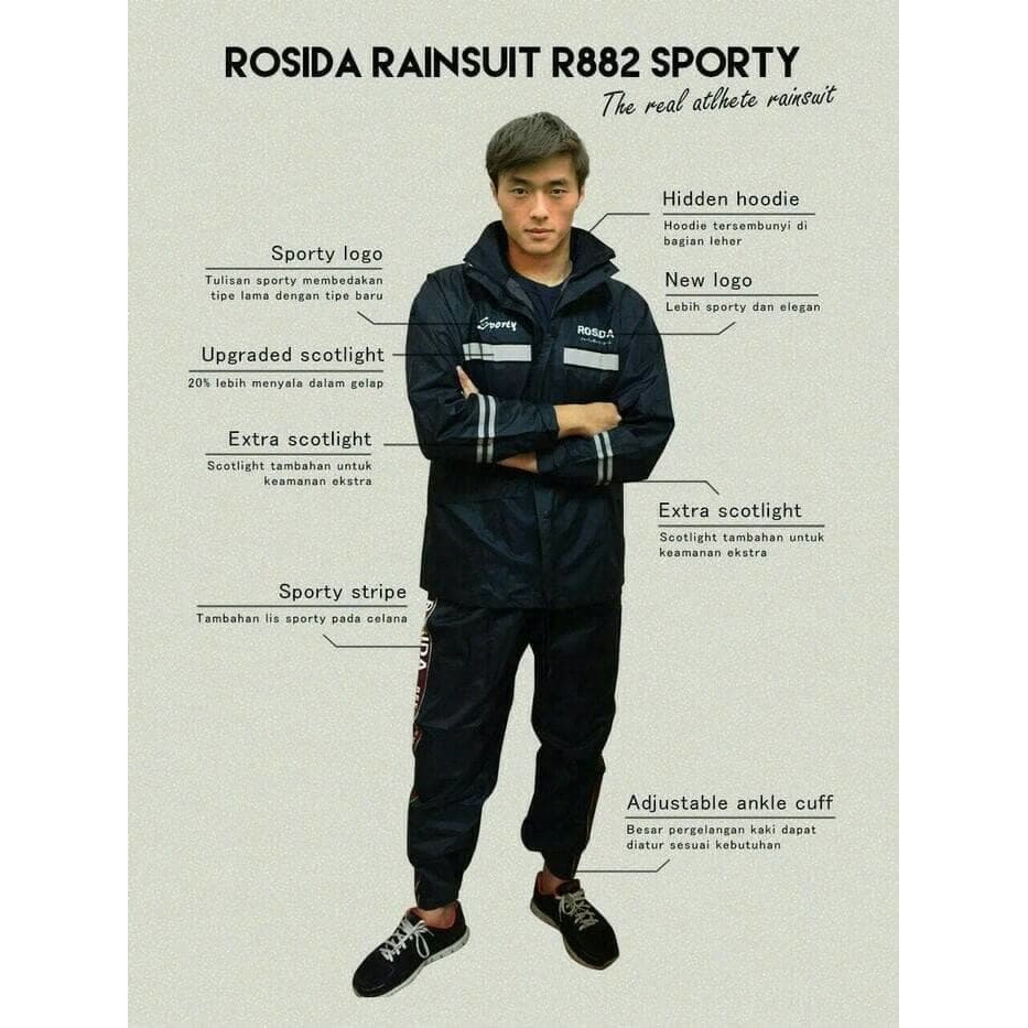 Jas Hujan Rosida Parasut 882 Sporty saingan Axio
