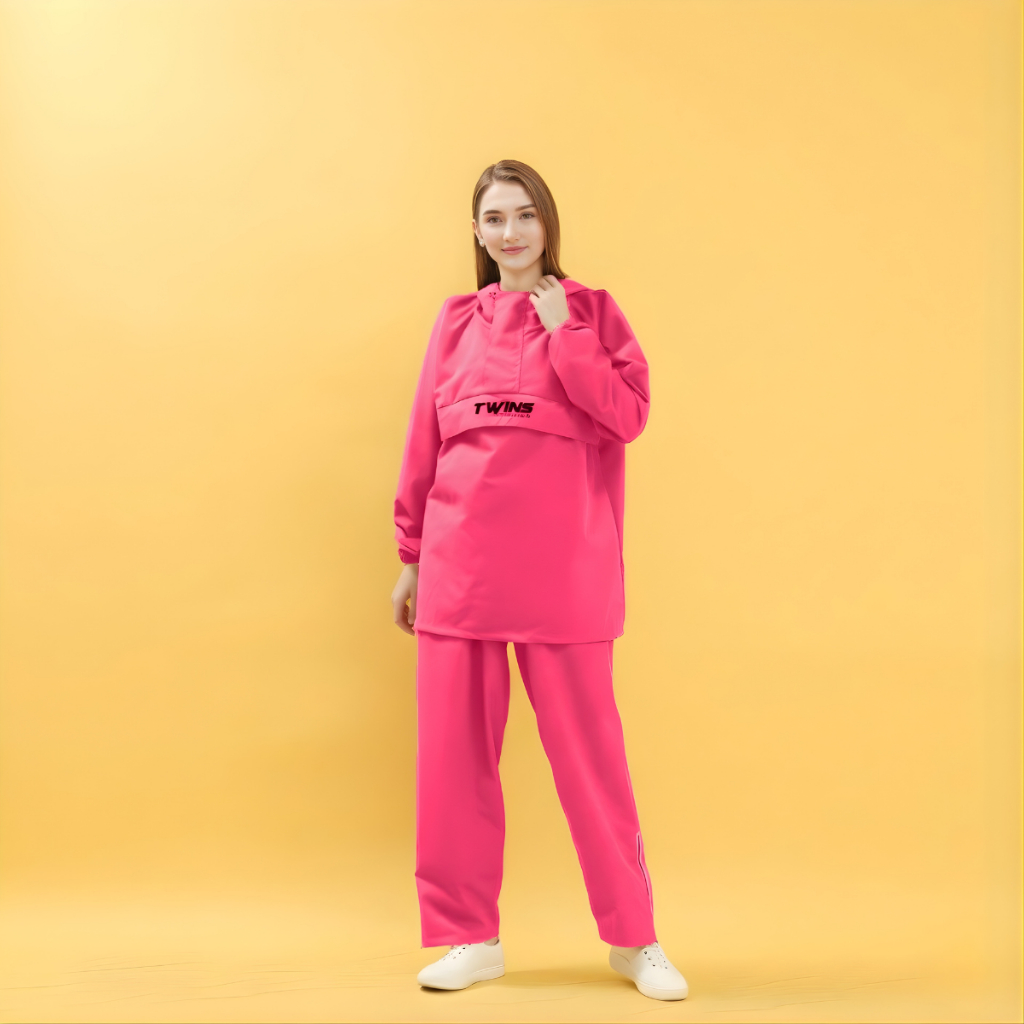 Jas Hujan TWINS19 Jas Hujan Saku Kangguru Pria Wanita Dewasa Anti Air Bahan Taslan Import Raincoat