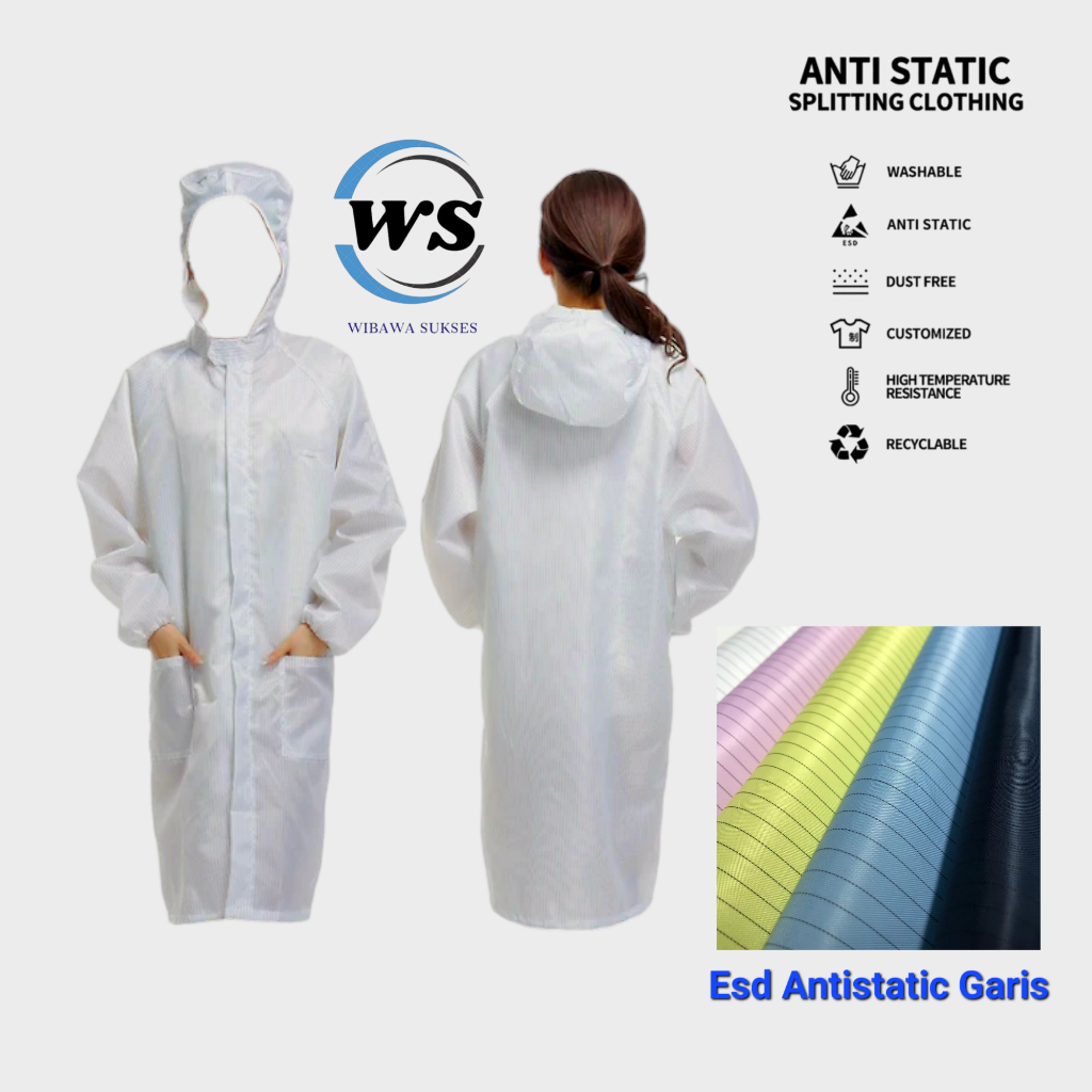 Jas Lab Antistatic ESD With Hood Dengan Penutup Kepala Menyatu