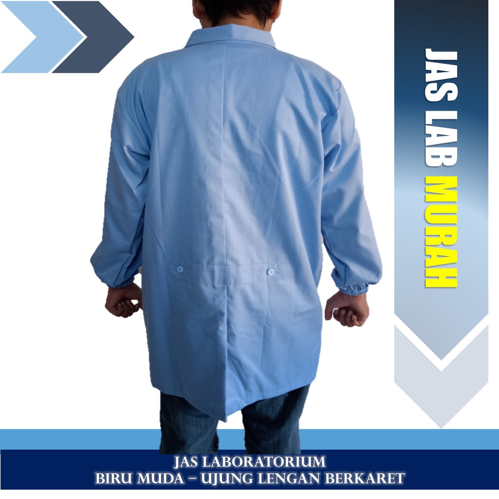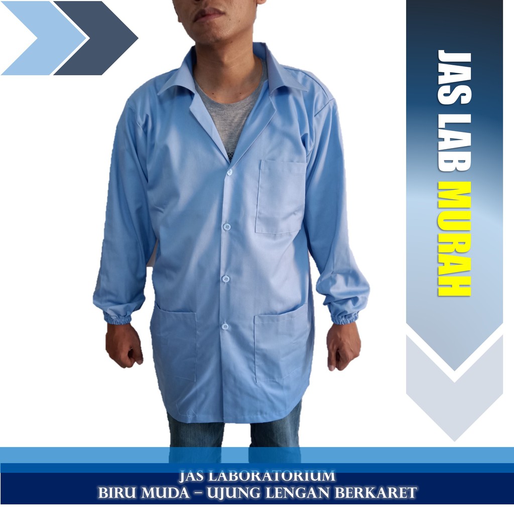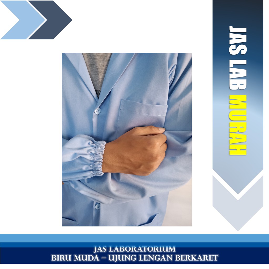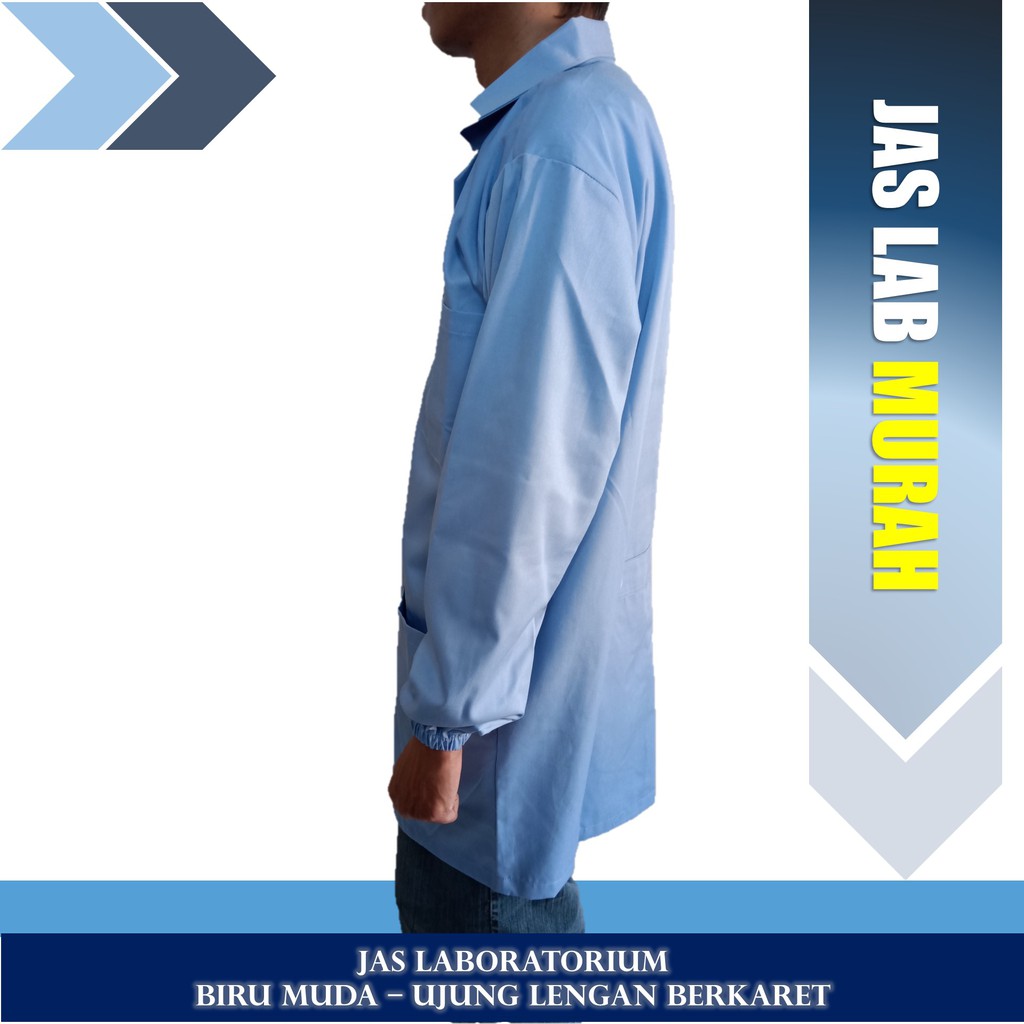 Jas Lab/ Jas Laboratorium/ Baju Praktikum Lengan Panjang Warna Biru Muda Lengan Berkaret