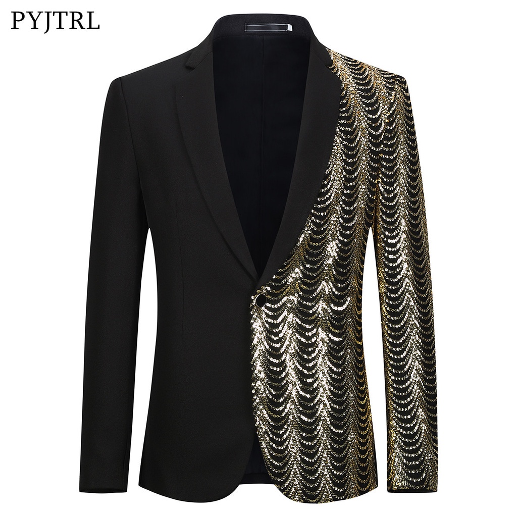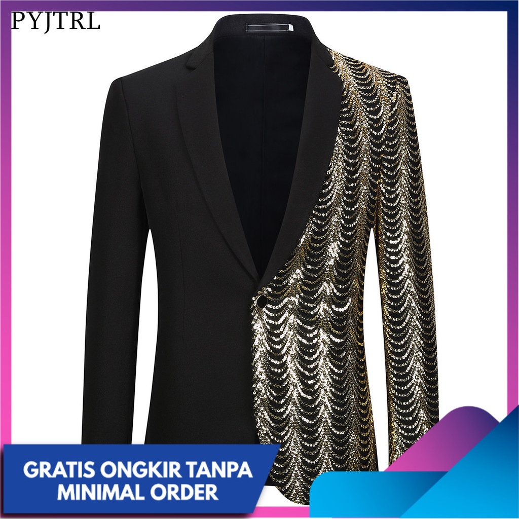 Jas Pesta Pria Kedatangan Golden Gelombang Payet Jahitan Blazer Pernikahan Penyanyi Import