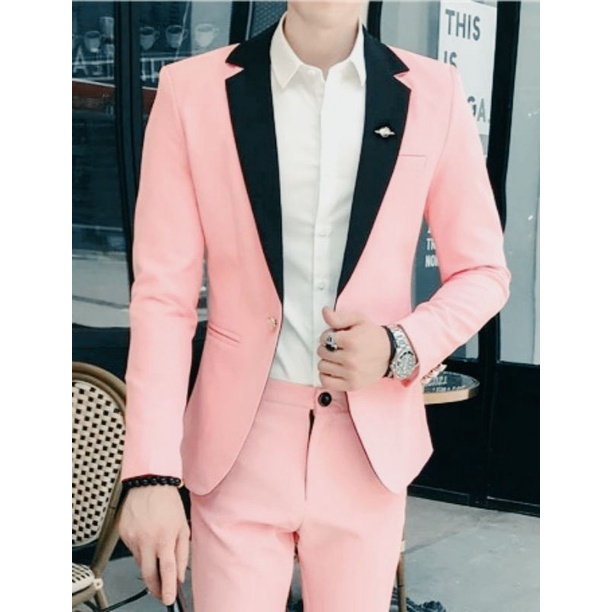 Jas Pria - Jas Single Button - Jas Wedding - Jas Party - Jas Prewedding - Pink Mix Hitam
