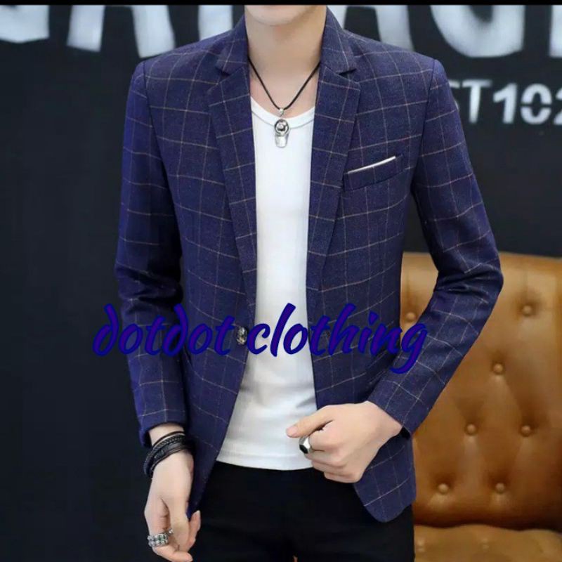 Jas Tartan Pria Jas Pria Motif Kotak Jas Style korea Blazer kotak Blezer Formal SETELAN KOTAK