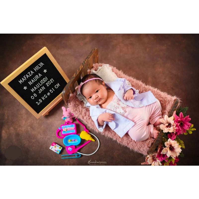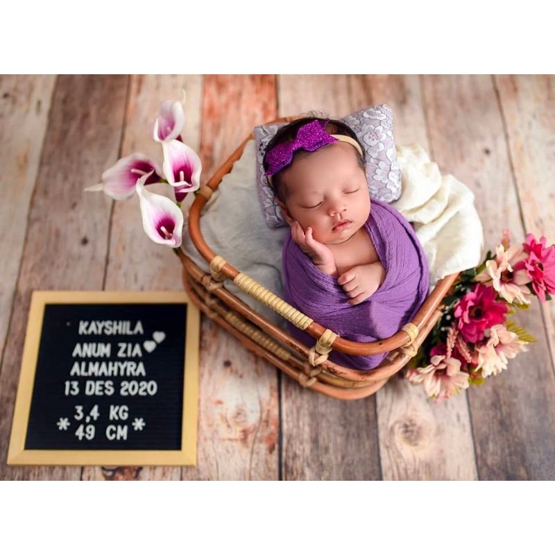 Jasa Edit Foto Studio Bayi Baru Lahir New Born untuk bayi Perempuan plus papan nama.