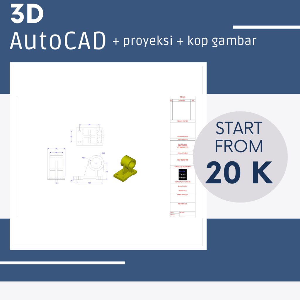 Jasa Gambar 3 dimensi AutoCAD + Proyeksi + Kop Gambar