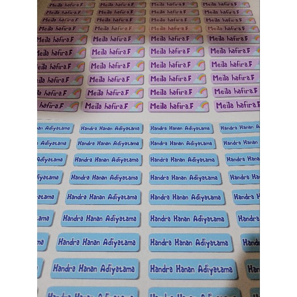 Jasa desain dan Cetak Sticker Label Nama Custom siap tempel satu hari jadi bisa buat buku tulis, pensil dan barang kepunyaan lainnya isi 40pcs