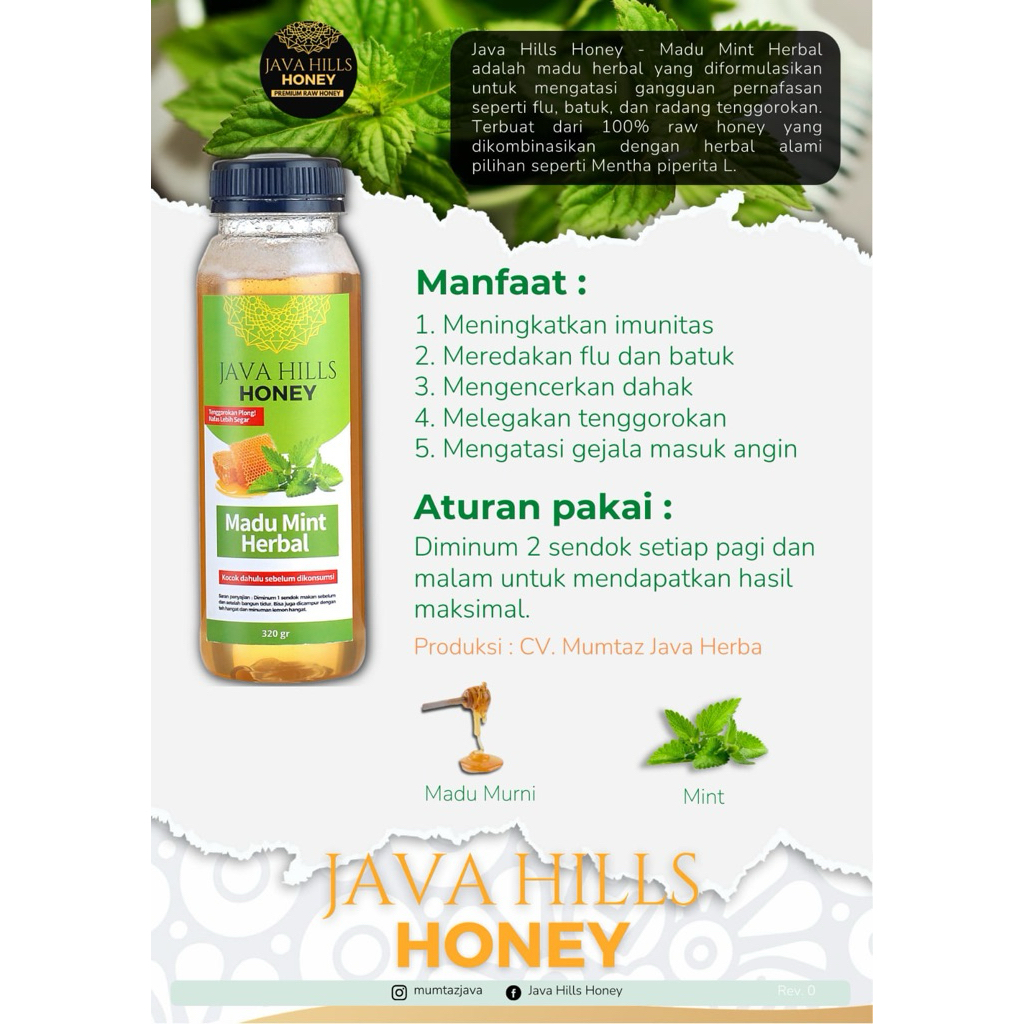 Java hills honey madu mint batuk flu asma sinusitis tbc herbal javahills honey mumtaz herba