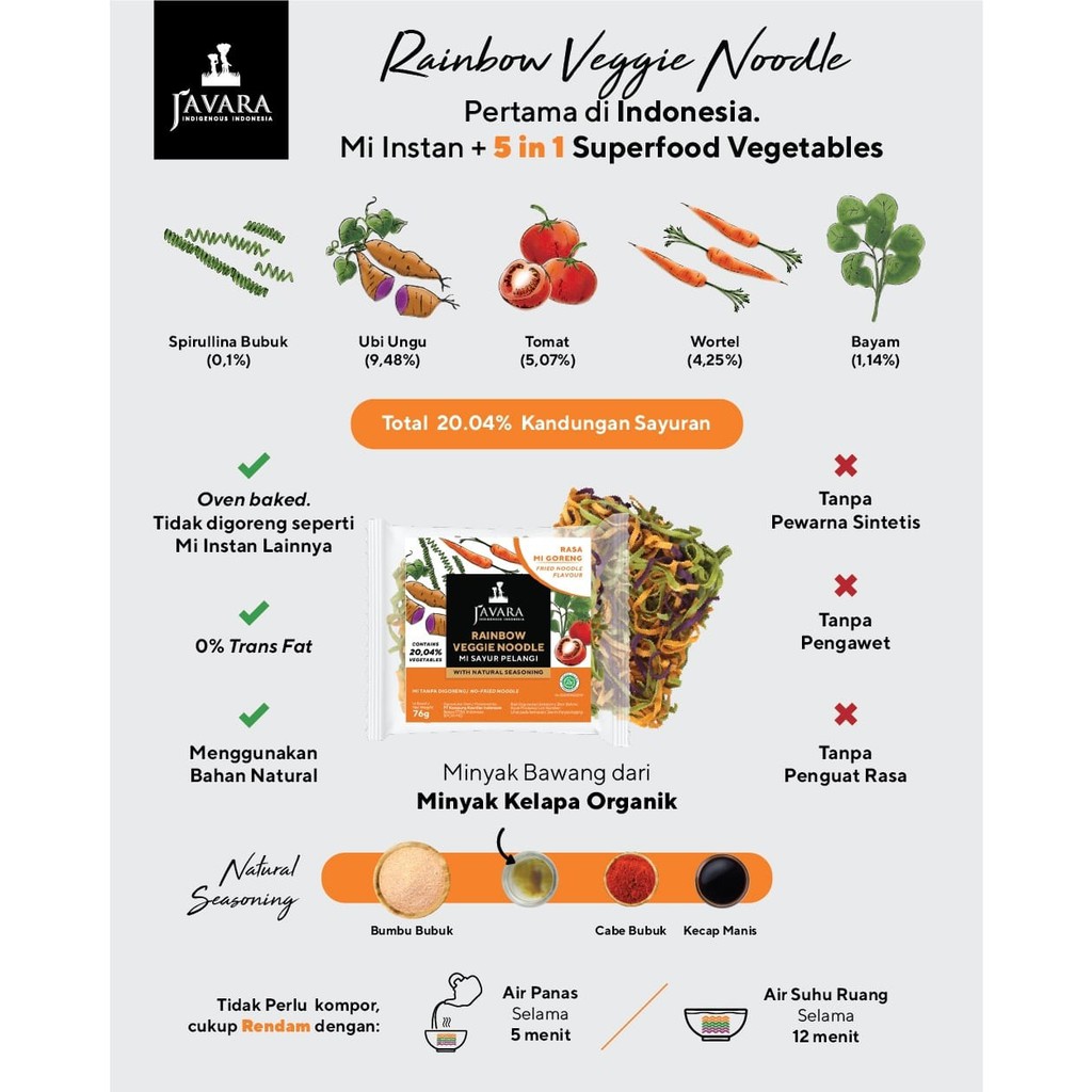 Javara Rainbow Veggie Noodle 76gr / Mie Sayur Pelangi 76gr, Mie Goreng
