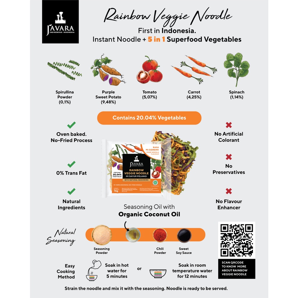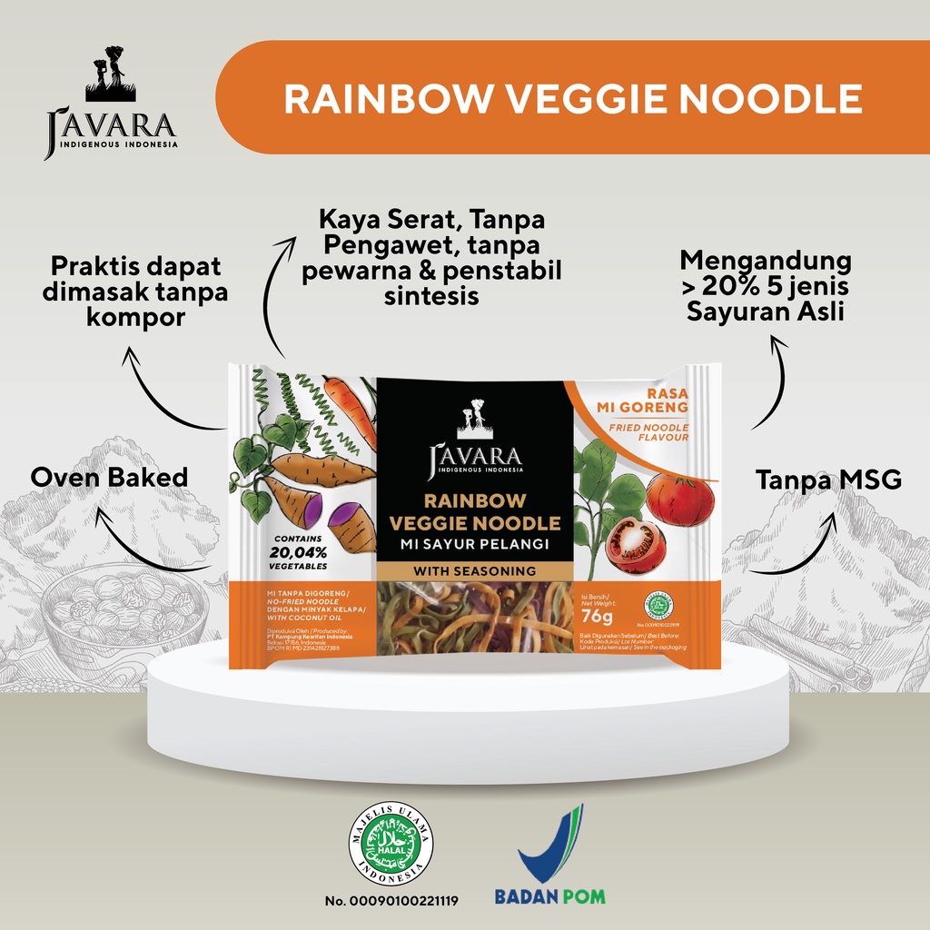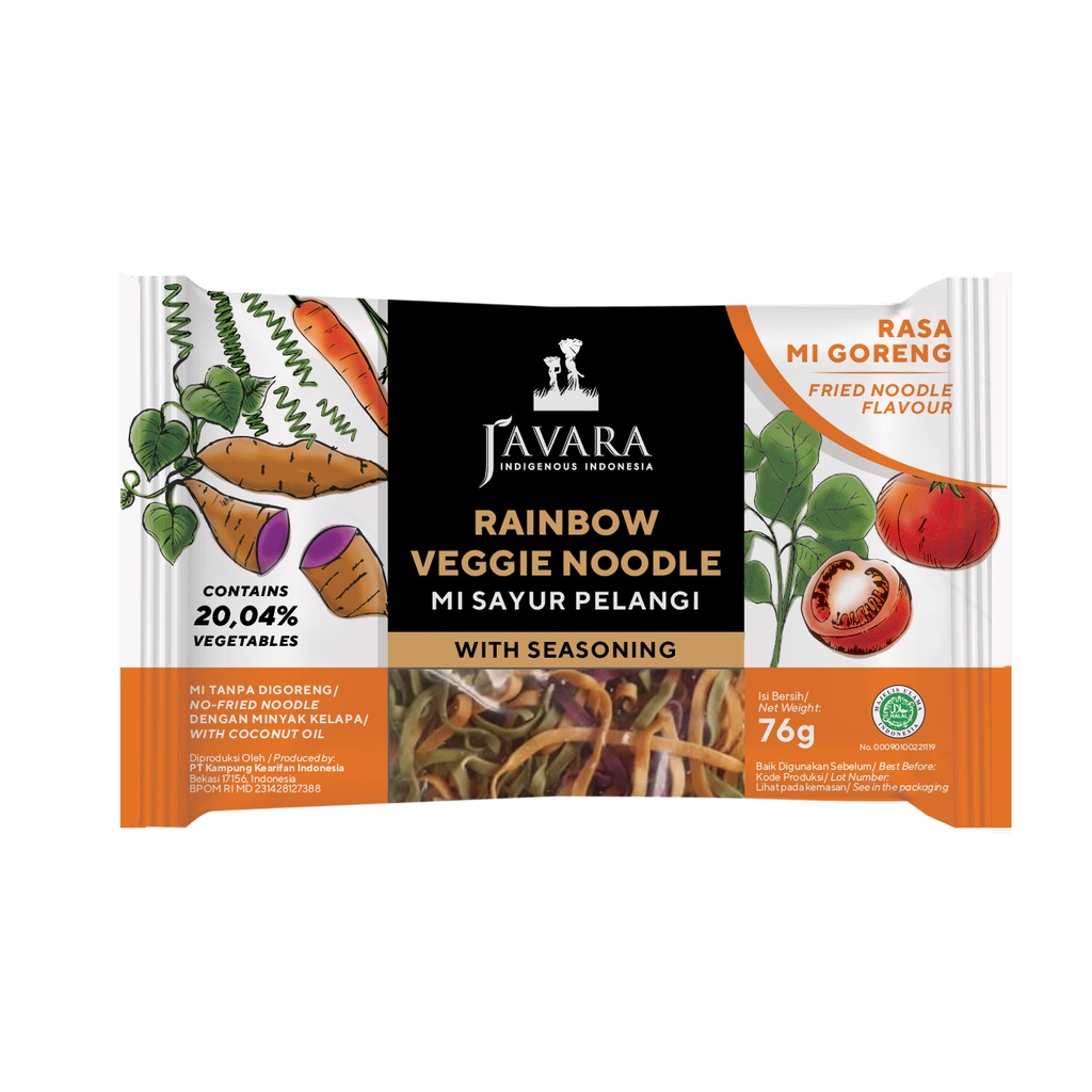Javara Rainbow Veggie Noodle - Mie Instan Sayur Pelangi Rasa Mie Goreng 76gr