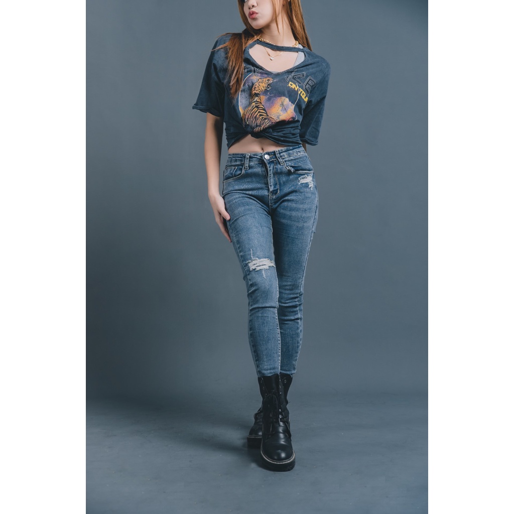 VIERLIN - Jeans 9125 9126 - HIGH WAIST SKINNY RIPPED SOBEK MELAR STRECHT