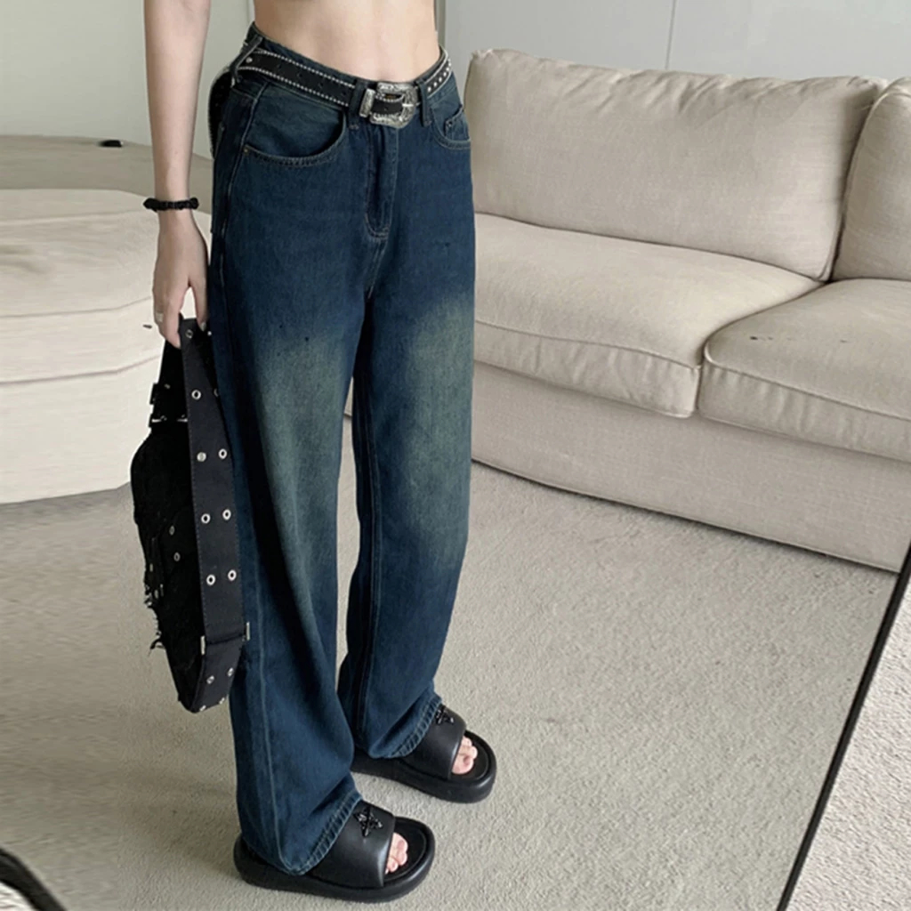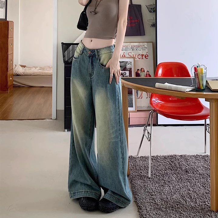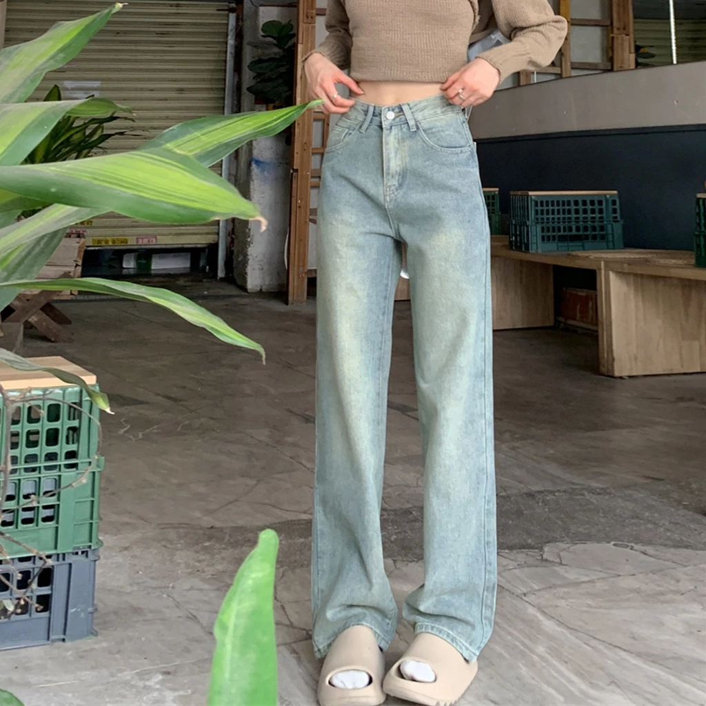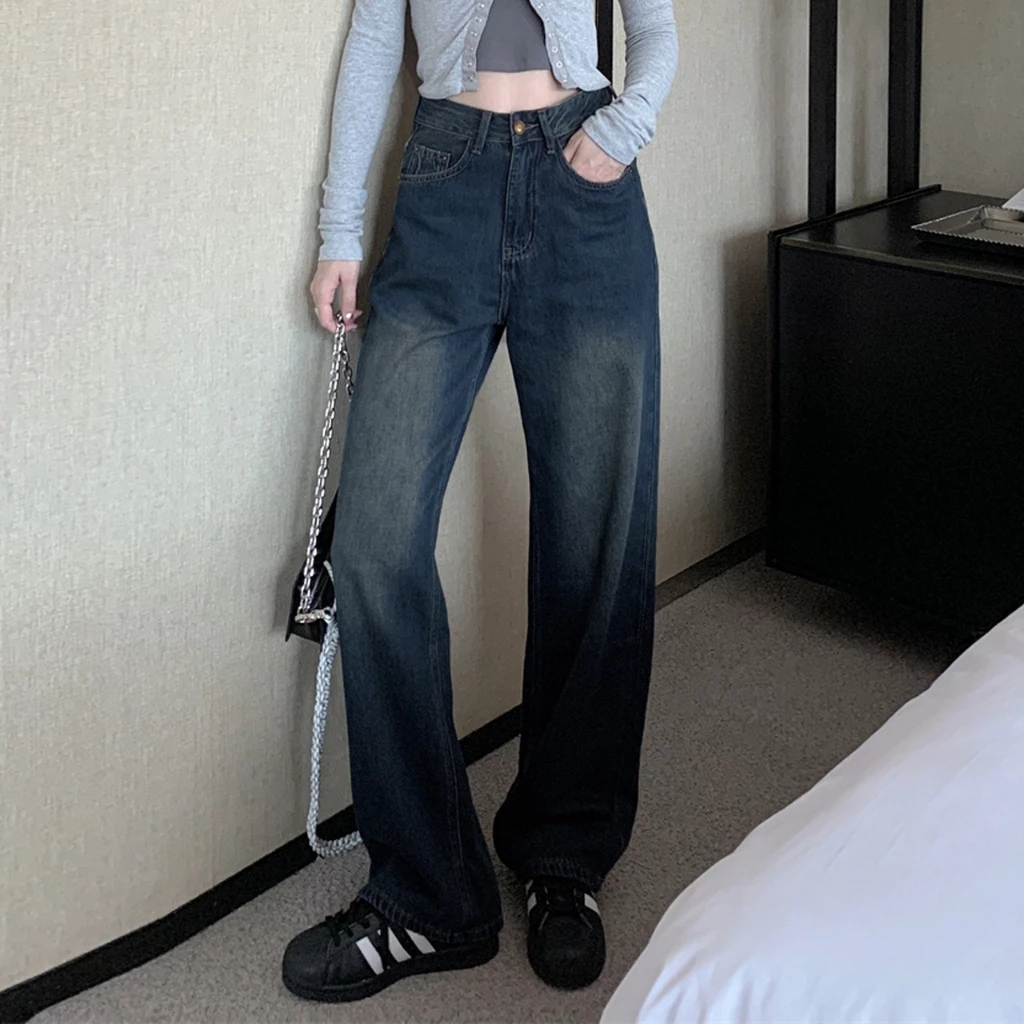 COD LULU Jeans Celana Jeans terbaru kulot Korea abu-abu retro pinggang tinggi--baggy jeans