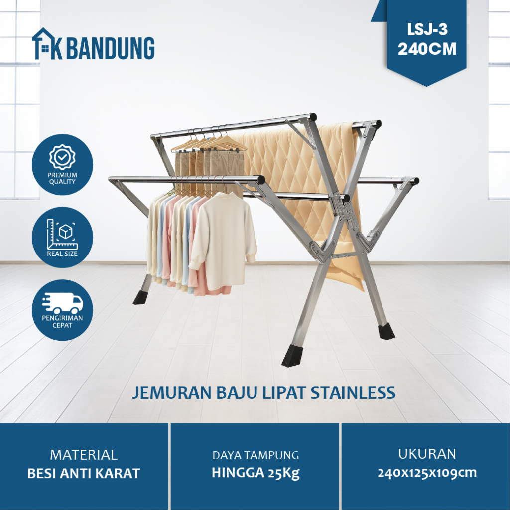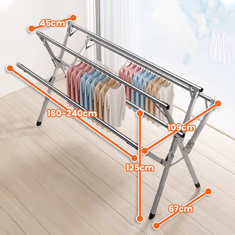 Jemuran Baju Lipat Stainless Steel Jemuran Pakaian Anti Karat Kuat Tempat Jemuran Baju Portable