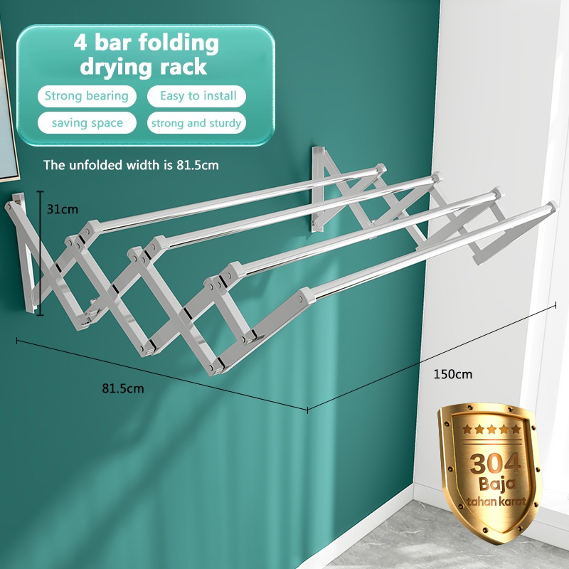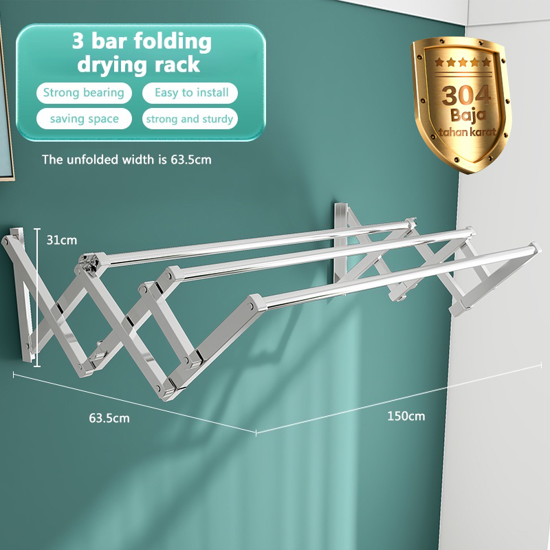 Jemuran Dinding Lipat Stainless 2 Meter Jemuran Baju Pakaian Dinding Jemuran Lipat Dinding