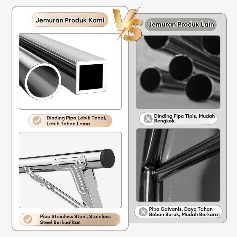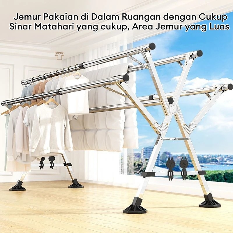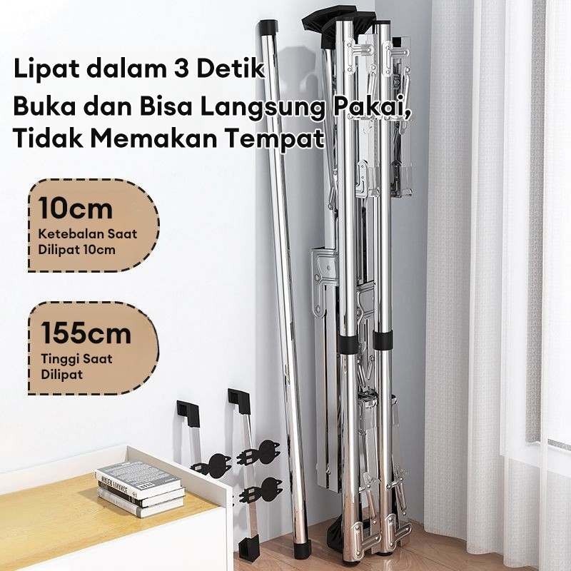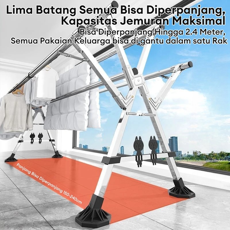 (5 Tiang+Roda)Rak Pakaian Lantai Lipat Balkon Dalam Ruangan Rumah Tangga Balkon Dalam Ruangan Stainless Steel Rak Pakaian Keren Batang Pengeringan Teleskopik