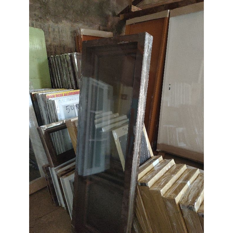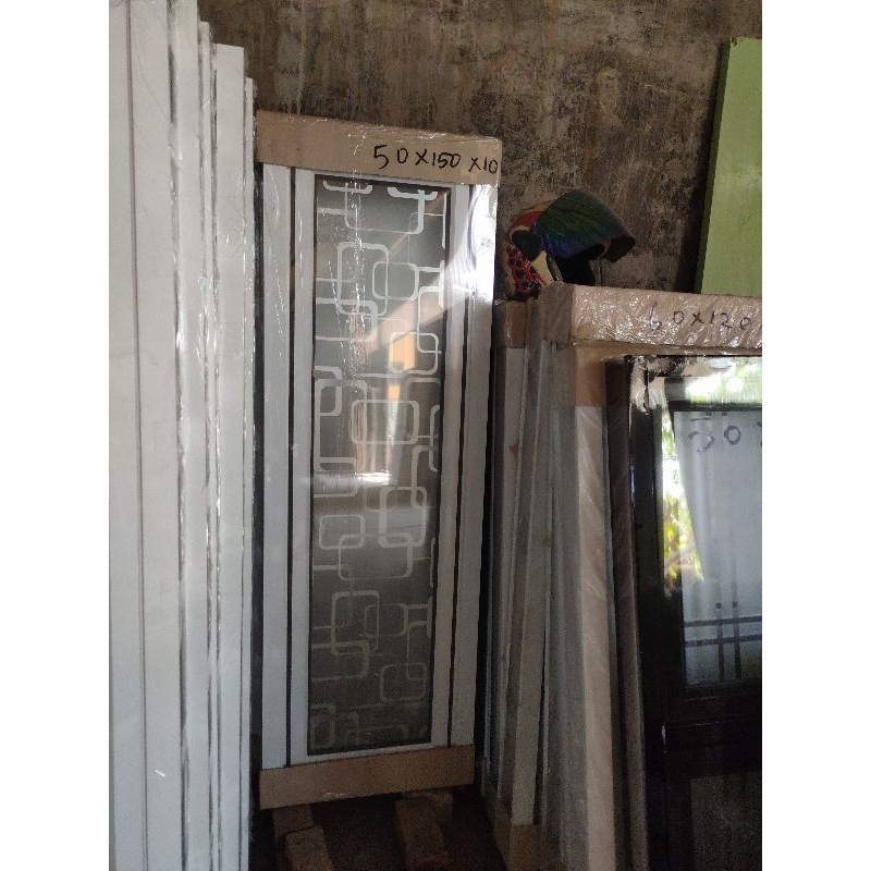Jendela Aluminium Premium Kusen Buka Jungkit Motif Kaca Es Crystal Kotak Ilusi Lumen Hias Full Premium Minimalis